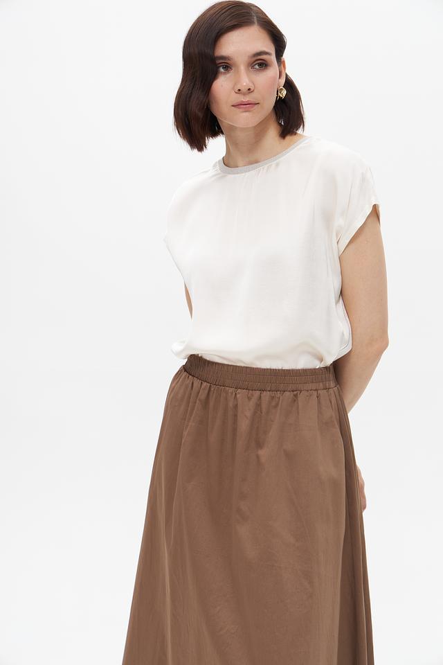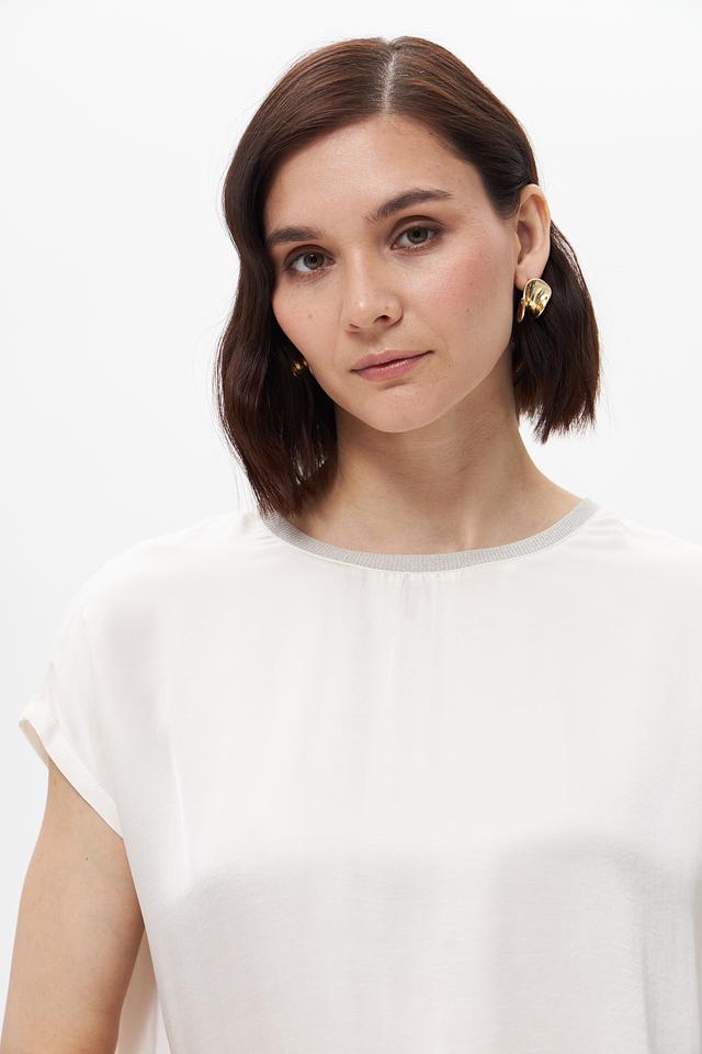 Округлый вырез горловины и короткие рукава делают эту блузу универсальной для различных стилей и сезонов. Она отлично сочетается с юбками, брюками и джинсами, позволяя создавать разнообразные комплекты.