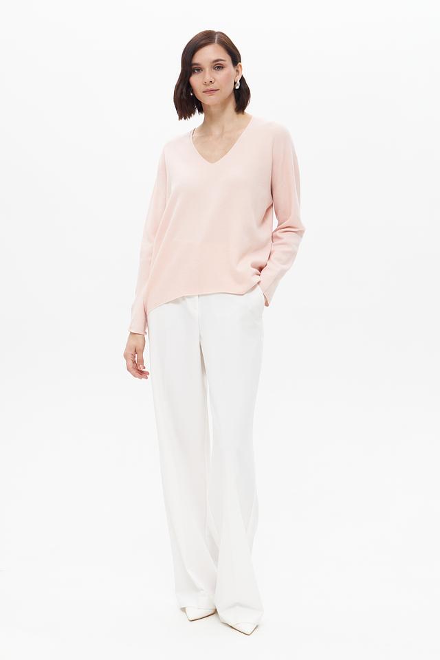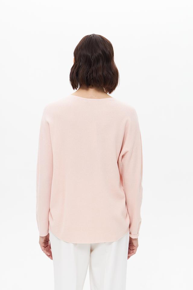 Женский пуловер Oui нежно-розового цвета с V-образным вырезом. Изготовлен из мягкой вискозы, полиэстера и полиамида, обеспечивающих комфорт и удобство в носке. Состав: вискоза 49%, полиэстер 28%, полиамид 23%