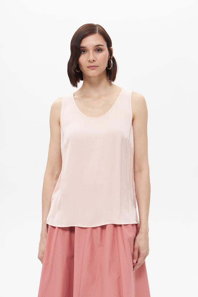 Нежный пудровый оттенок делает этот топ особенно женственным и универсальным. Он подойдет для создания как повседневных, так и более нарядных образов. Вискоза обеспечивает комфорт в жаркую погоду, позволяя коже дышать.