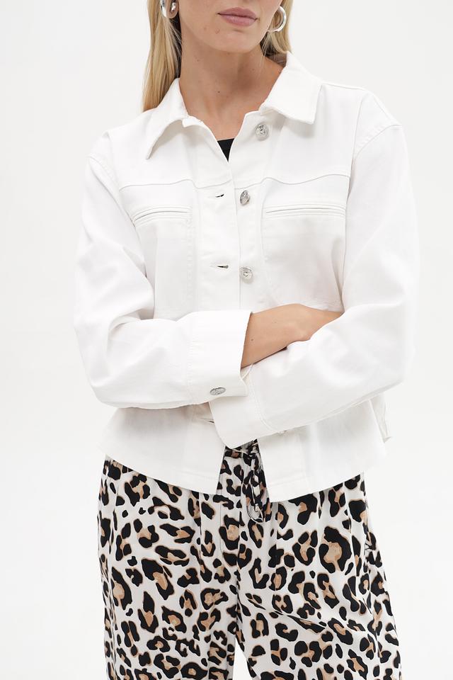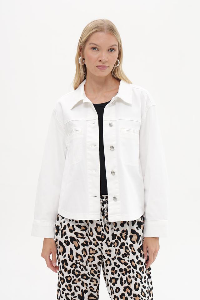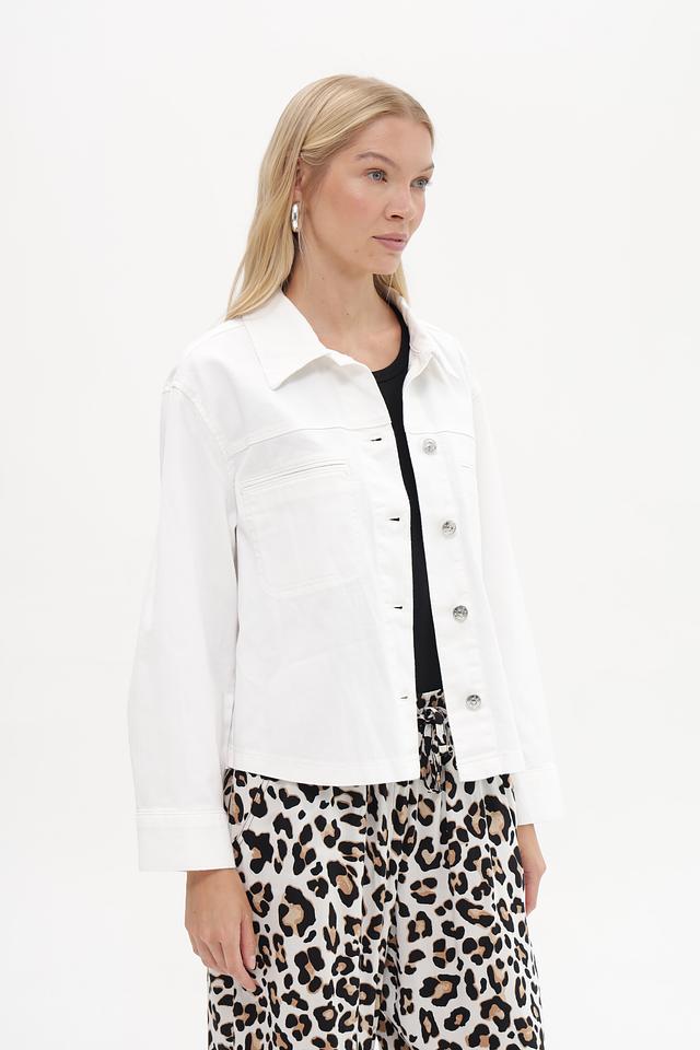 Этот жакет от Oui выполнен в классическом джинсовом стиле. Преобладающий цвет – белый, что делает его легко сочетаемым с различными элементами одежды.