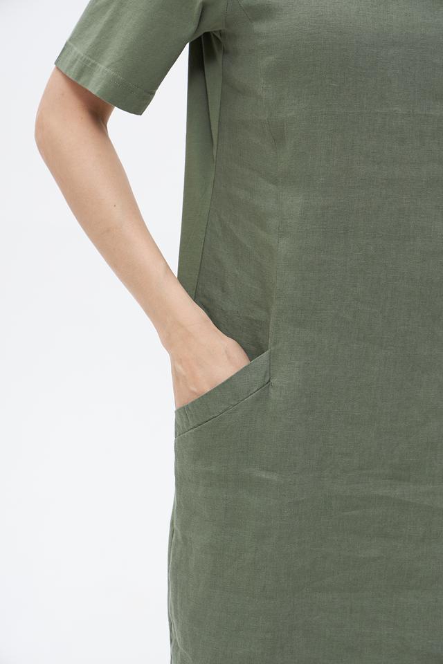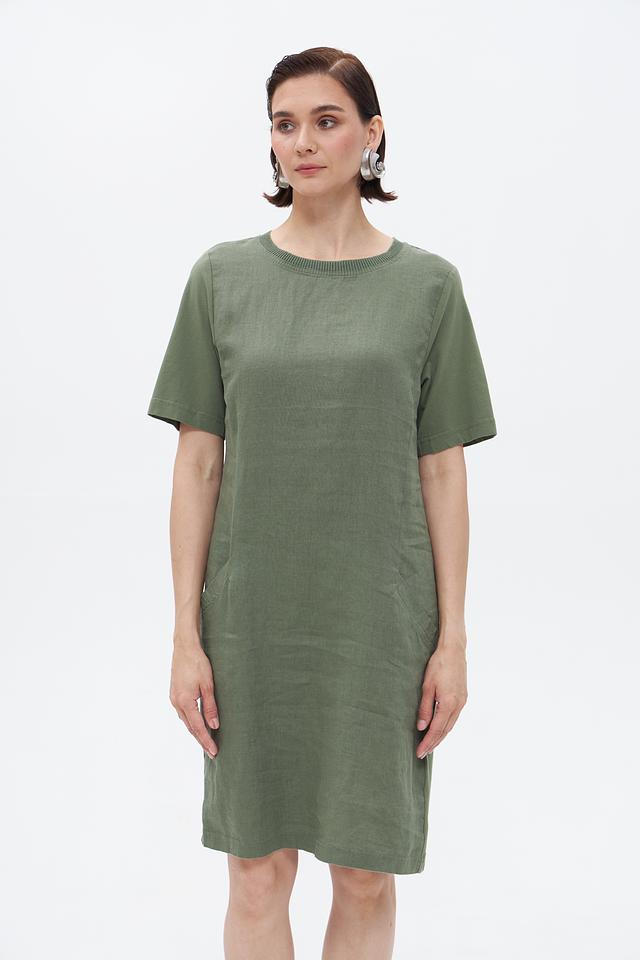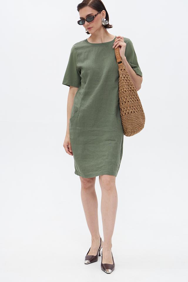 Льняное платье Oui оливкового цвета – это комфорт и стиль в одном изделии. Платье прямого кроя из 100% льна идеально подходит для летнего гардероба. Состав: лен 100%