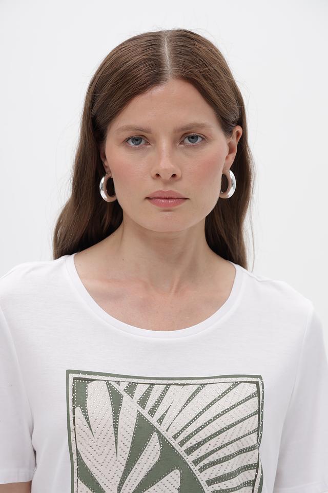 Белая футболка от Oui с оригинальным графичным принтом. Изготовлена из мягкого хлопка с модалом для комфорта. Идеально сочетается с юбками и брюками в повседневном стиле. Состав: хлопок 50%, модал 50%