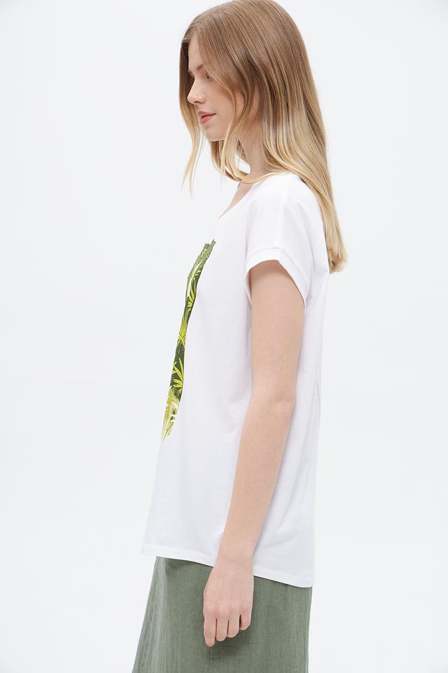 Белая футболка Oui с ярким тропическим принтом. Изготовлена из 100% хлопка, обеспечивающего комфорт и воздухопроницаемость. Идеальный выбор для создания стильного и непринужденного образа. Состав: хлопок 100%