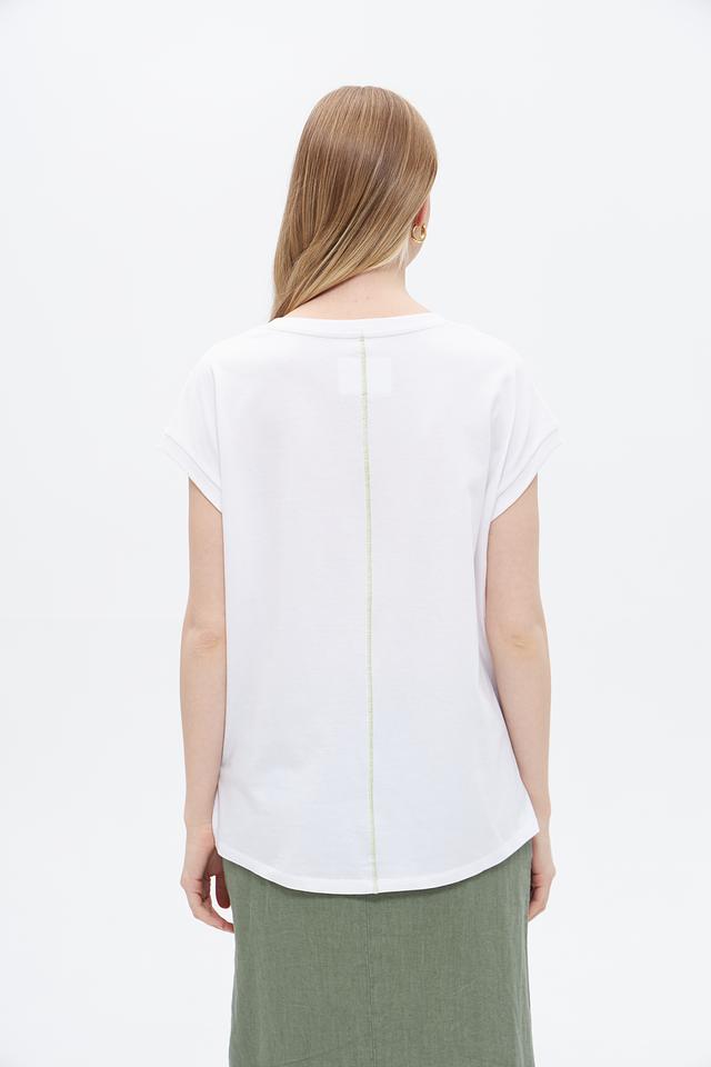 Футболка имеет прямой крой и короткие рукава, что делает ее универсальной и подходящей для различных типов фигур. Она легко сочетается с джинсами, шортами, юбками и другими элементами гардероба.
