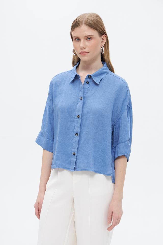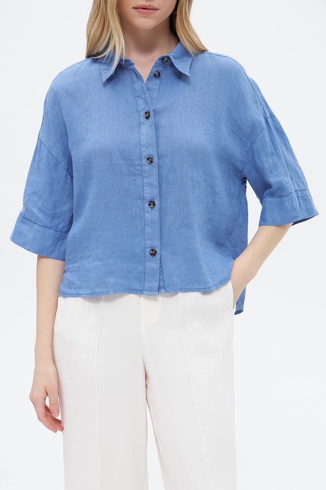 Блуза Oui из льна голубая