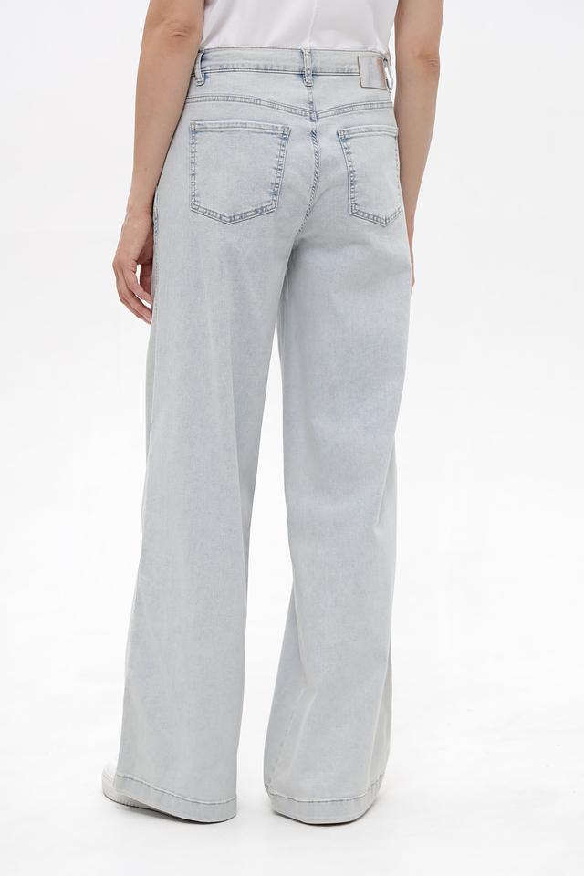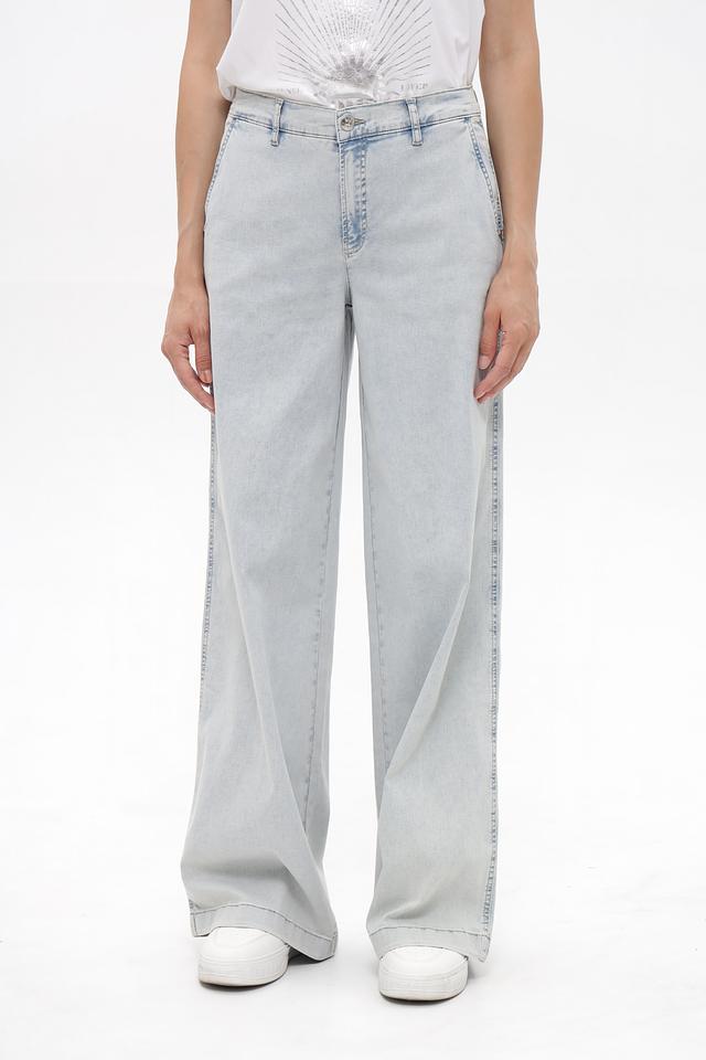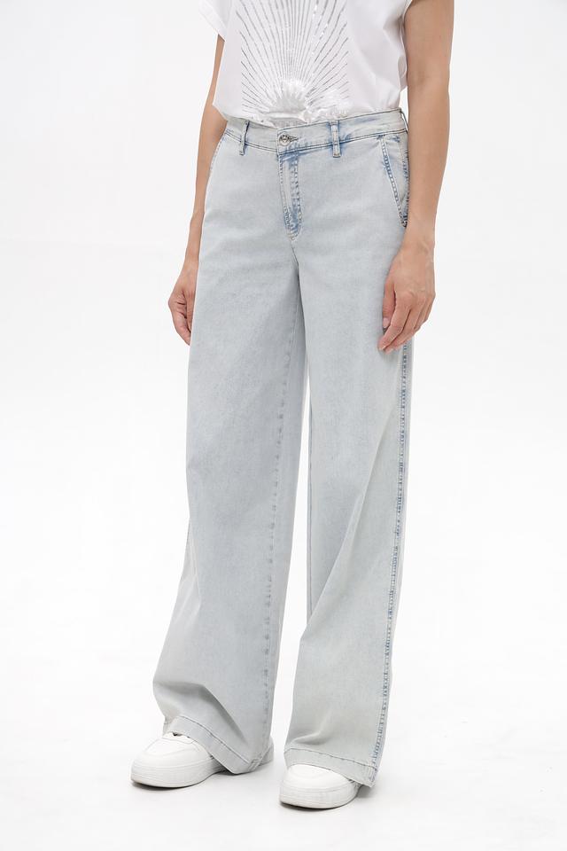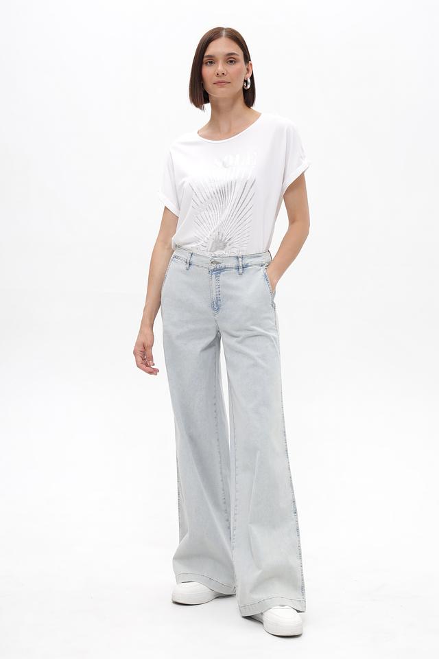 Крой джинсов – широкий, обеспечивающий свободу движений и комфорт в носке. Высокая посадка подчеркивает талию и визуально удлиняет ноги. Пять карманов – два спереди и два сзади – добавляют функциональности.