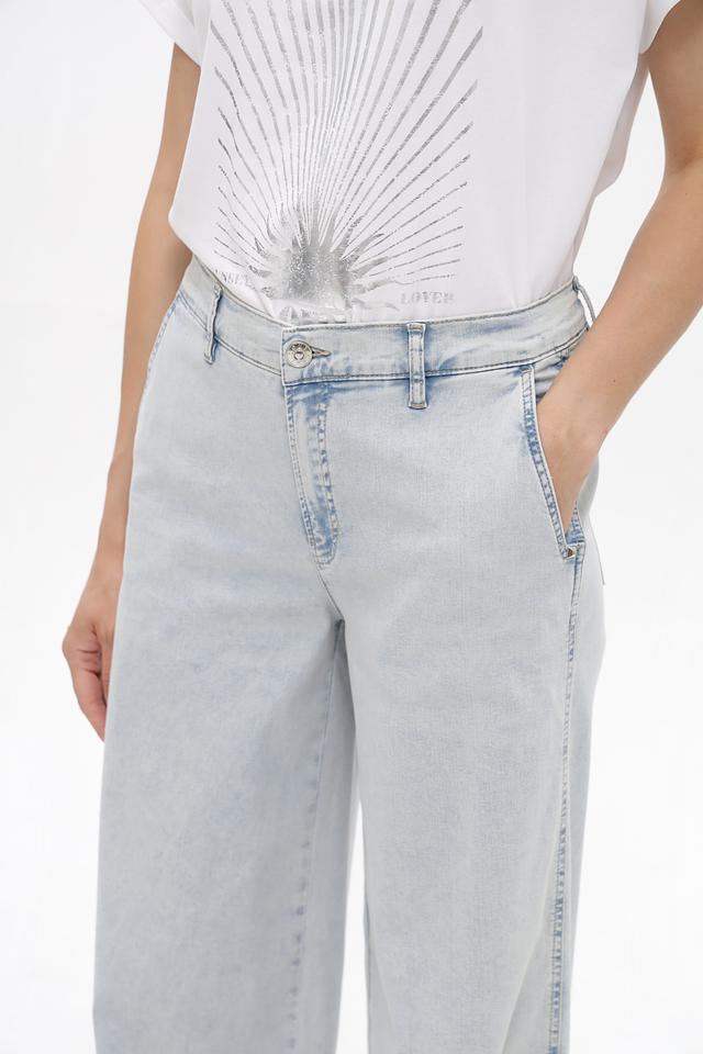 Джинсы Oui – это стильное и удобное решение для повседневного гардероба. Модель выполнена в светло-голубом цвете с эффектом потертостей, что придает ей непринужденный вид.