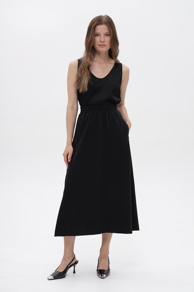 Благодаря лаконичному дизайну и классическому черному цвету, эта юбка легко сочетается с различными элементами одежды, позволяя создавать разнообразные образы – от повседневных до более нарядных.