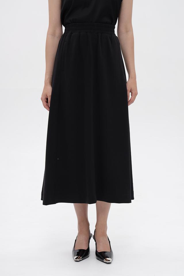 Юбка имеет прямой силуэт, длину миди и эластичный пояс на талии, что гарантирует идеальную посадку по фигуре.