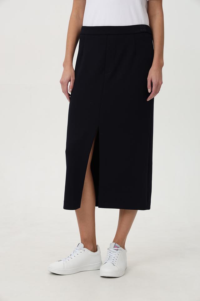 Классическая юбка миди от бренда Oui станет отличным дополнением к вашему гардеробу. Модель выполнена в тёмно-синем цвете и имеет элегантный крой с разрезом спереди.