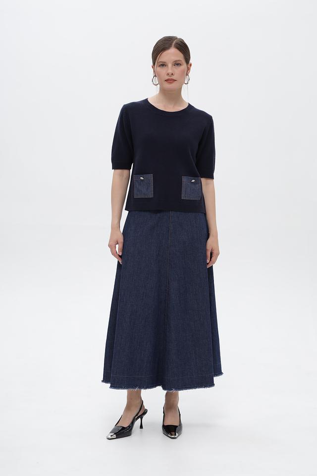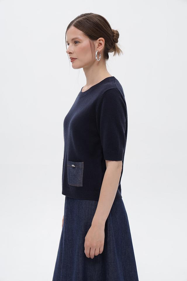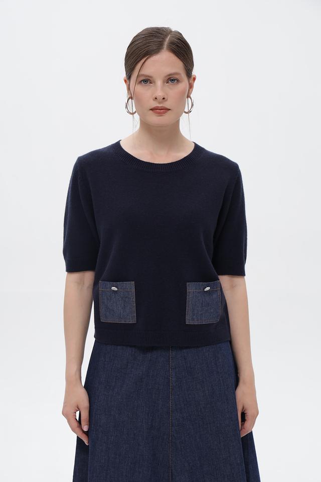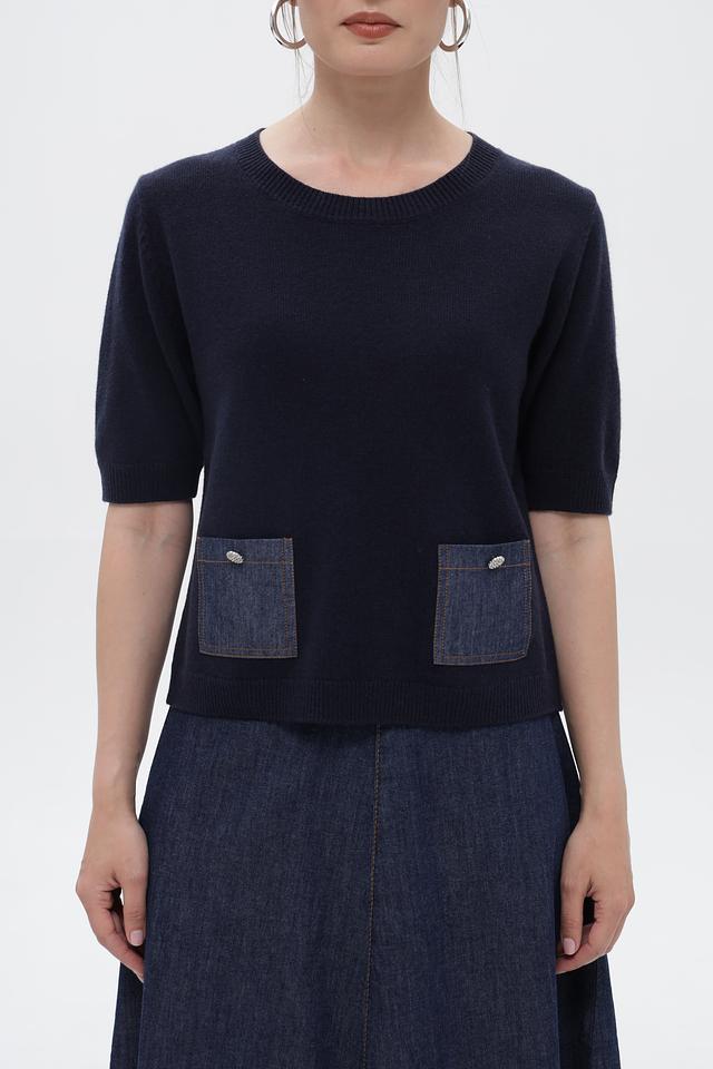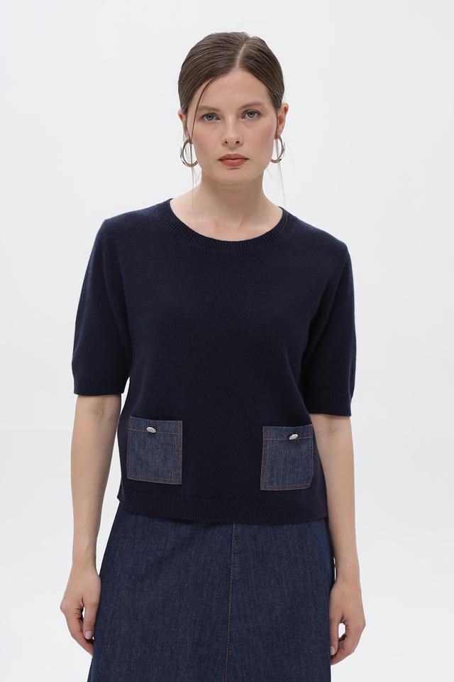 Пуловер Oui темно-синий с джинсовыми карманами и кнопками