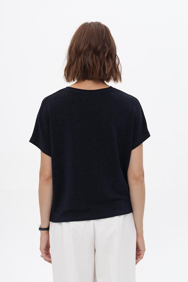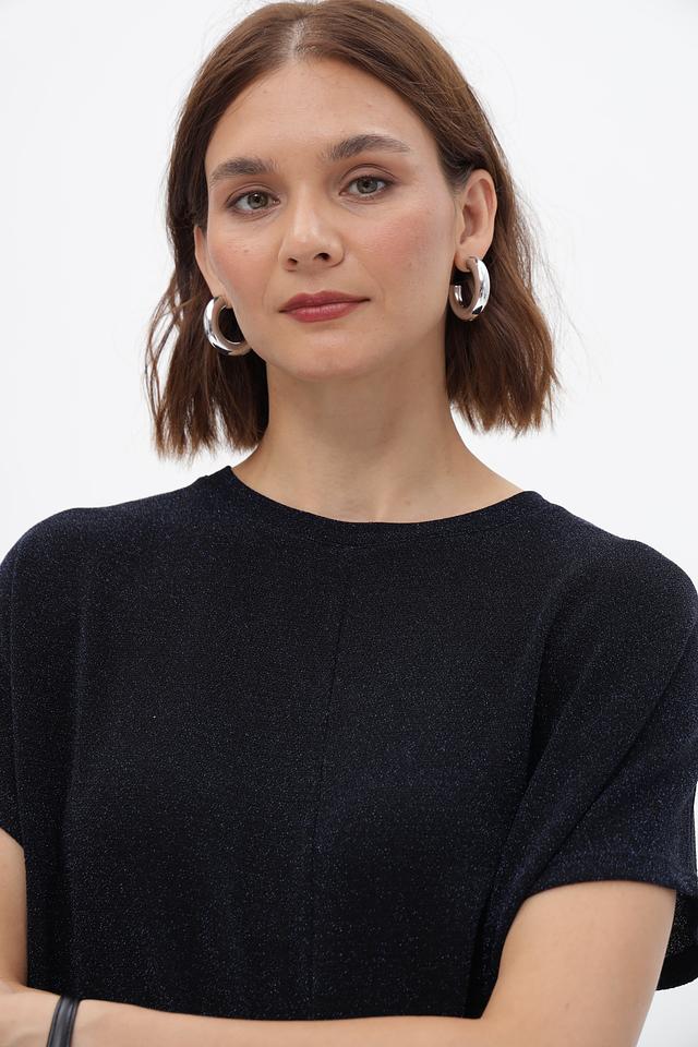 Модель выполнена из высококачественного полиамида с добавлением эластана и металлизированной нити, благодаря чему блузка имеет легкий блеск и приятна к телу.