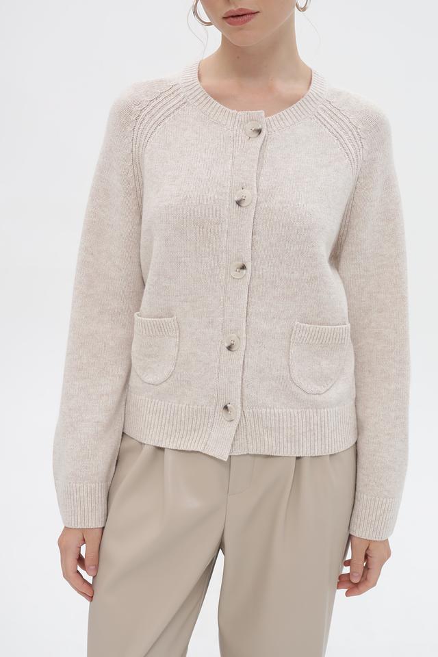 Вязаная текстура кардигана придает ему уютный и стильный вид, который легко сочетается с различными элементами гардероба. Этот жакет станет отличным выбором для создания повседневных и элегантных образов.