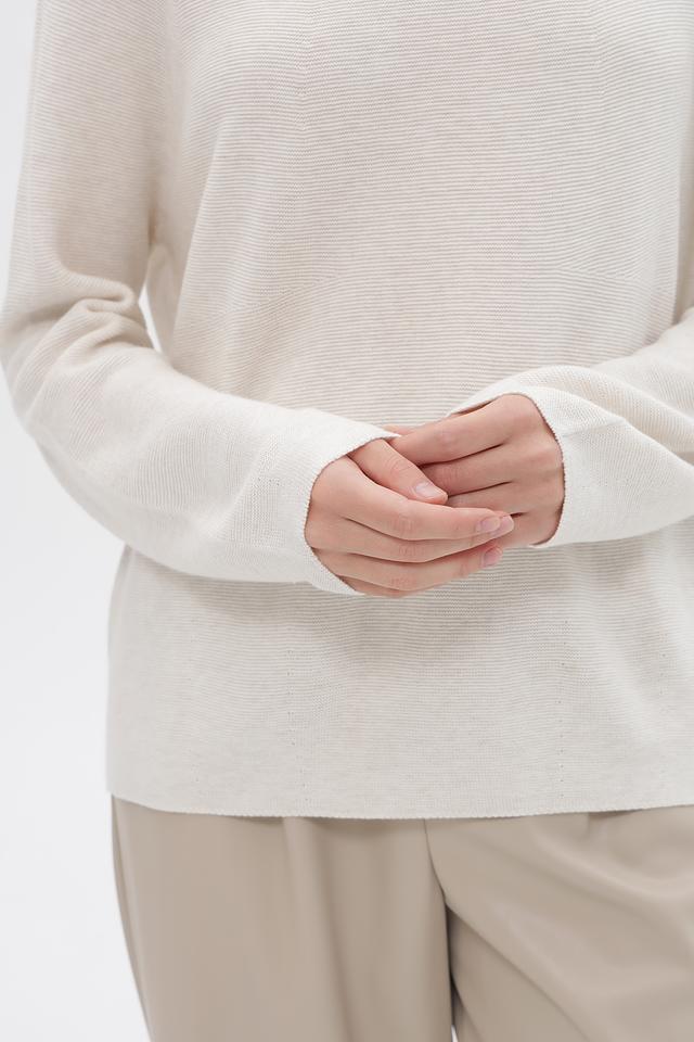 Бежевый пуловер от Oui из мягкого трикотажа. Изготовлен из натурального хлопка с добавлением вискозы, шелка и кашемира для комфорта и износостойкости. Состав: хлопок 57%, вискоза 30%, шелк 10%, кашемир 3%