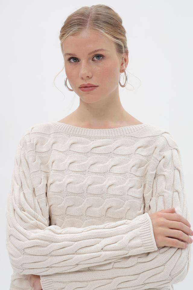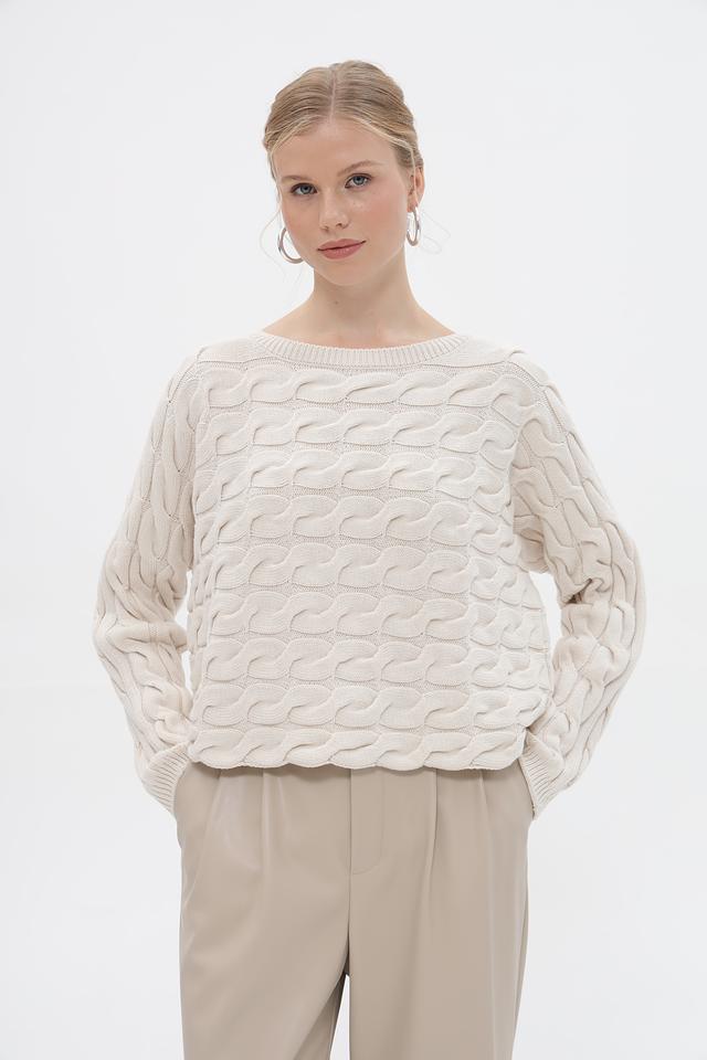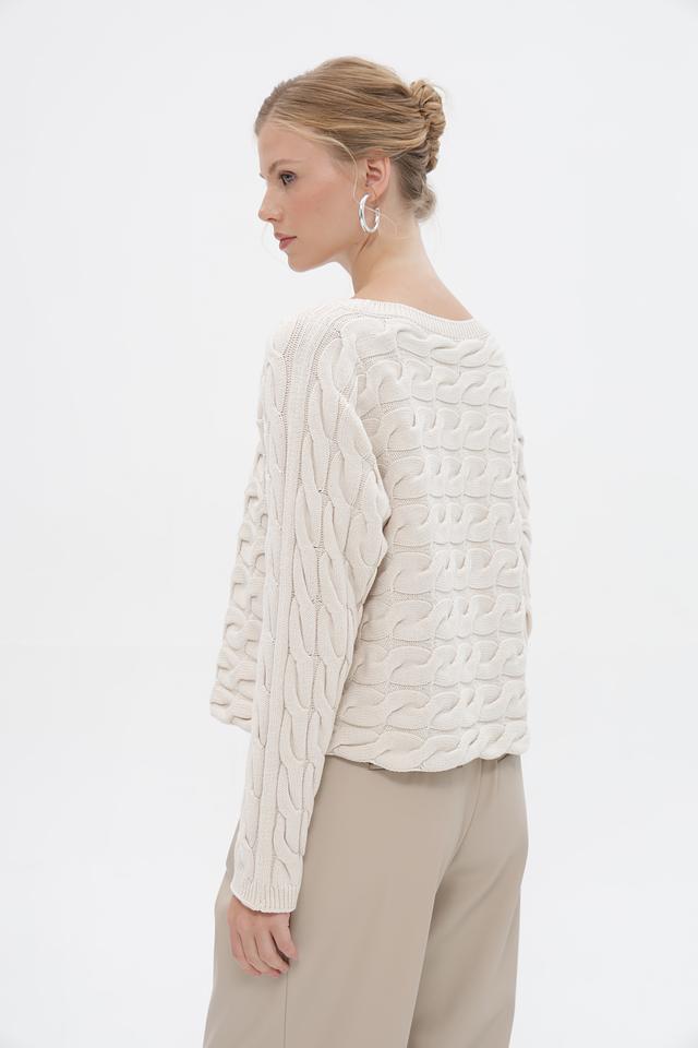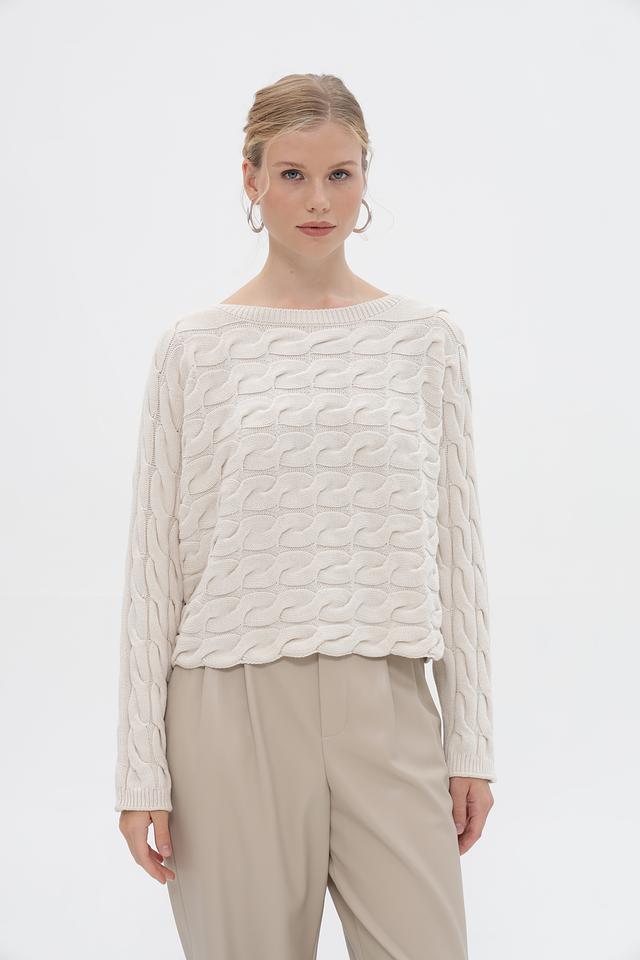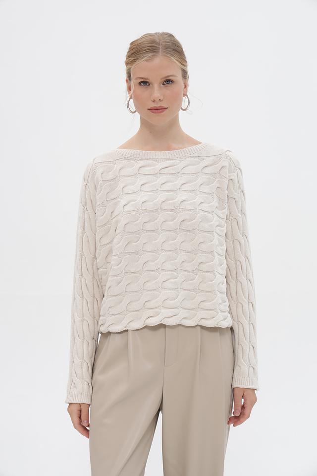 Пуловер Oui с косами бежевый