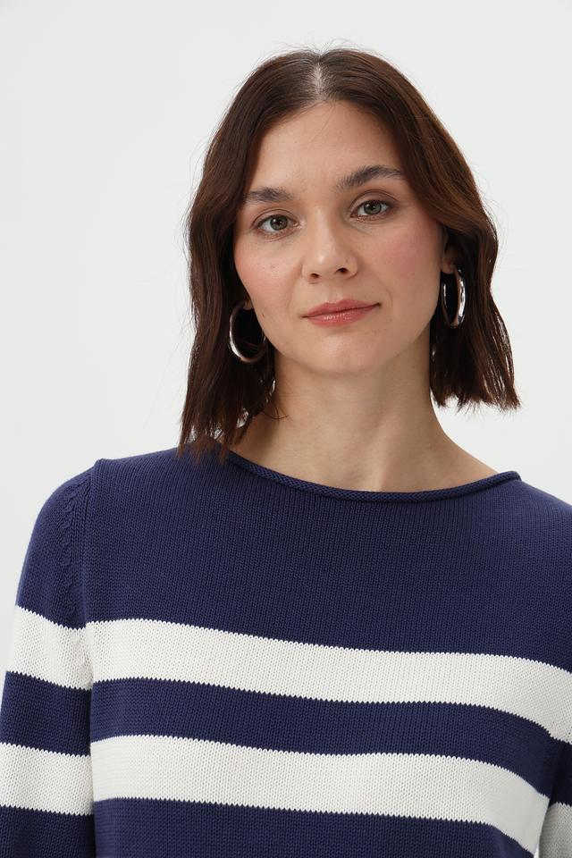 Стильный пуловер Oui синего цвета с классической полоской станет отличным дополнением к вашему гардеробу. Изделие выполнено из мягкого трикотажа с добавлением хлопка. Состав: хлопок 100%
