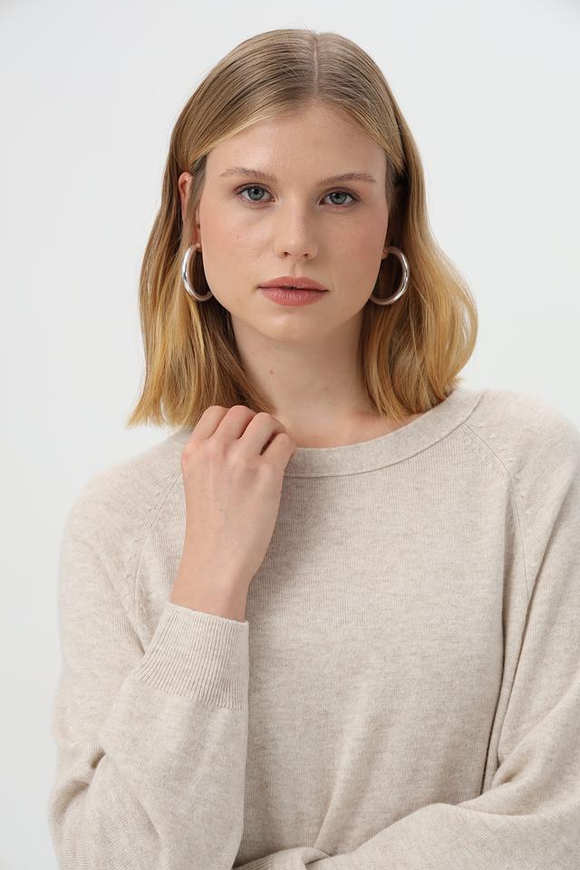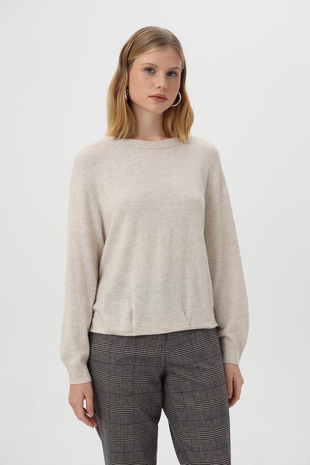 Бежевый пуловер от бренда Oui — это стильное и комфортное решение для повседневного гардероба. Модель имеет прямой крой и округлый вырез горловины, что делает ее универсальной и подходящей для различных образов.