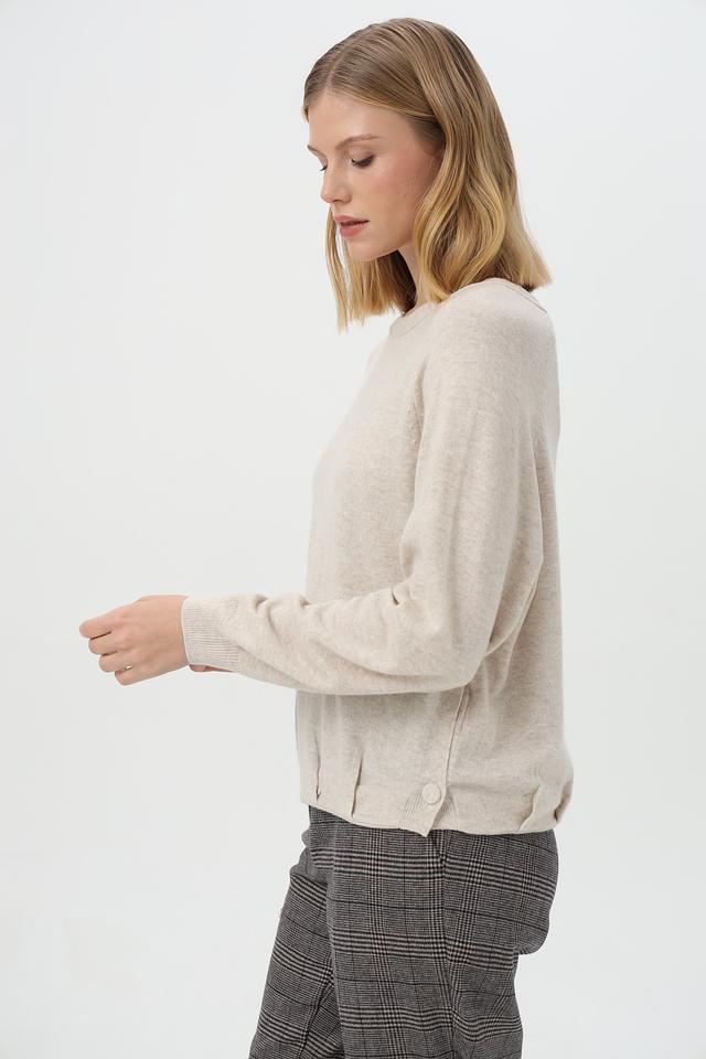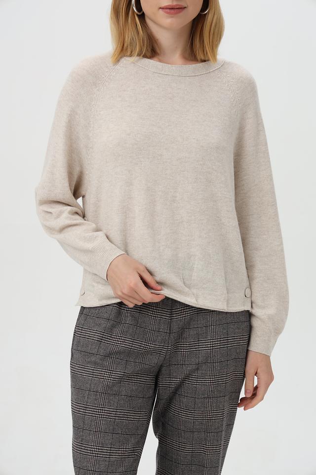 Бежевый пуловер Oui из смесового волокна с округлым вырезом и декоративными пуговицами. Изделие выполнено из полиамида, вискозы, шерсти и кашемира, обеспечивая комфорт и мягкость. Состав: полиамид 45%, вискоза 30%, шерсть 20%, кашемир 5%