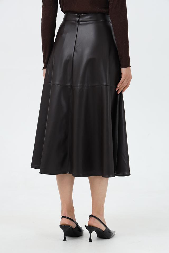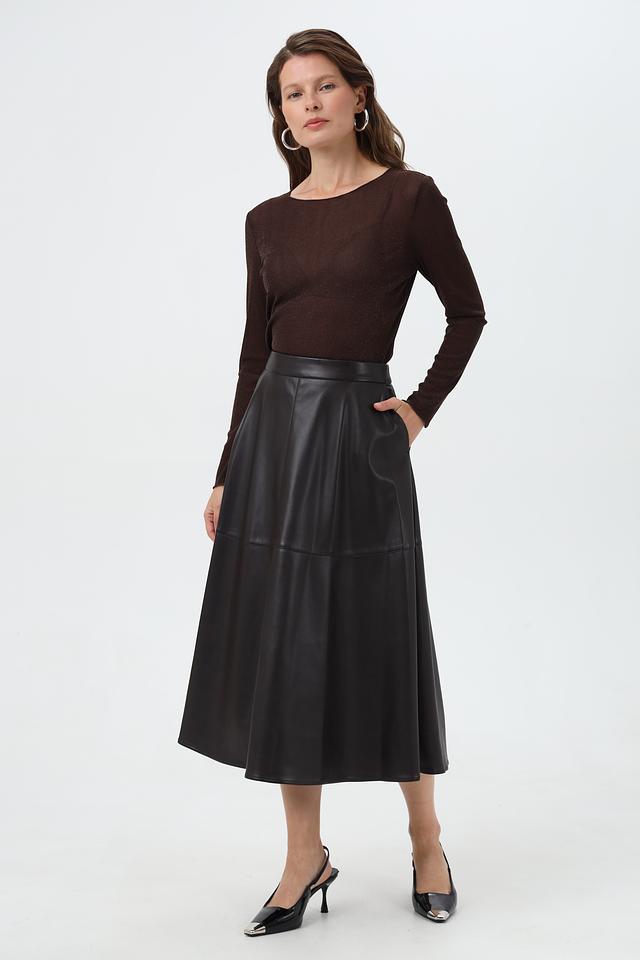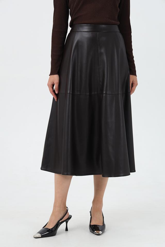 Классическая юбка-солнце миди от бренда Oui, выполненная из гладкой экокожи. Данная модель станет универсальным дополнением к вашему гардеробу, легко сочетаясь как с повседневной одеждой, так и с более элегантными образами.