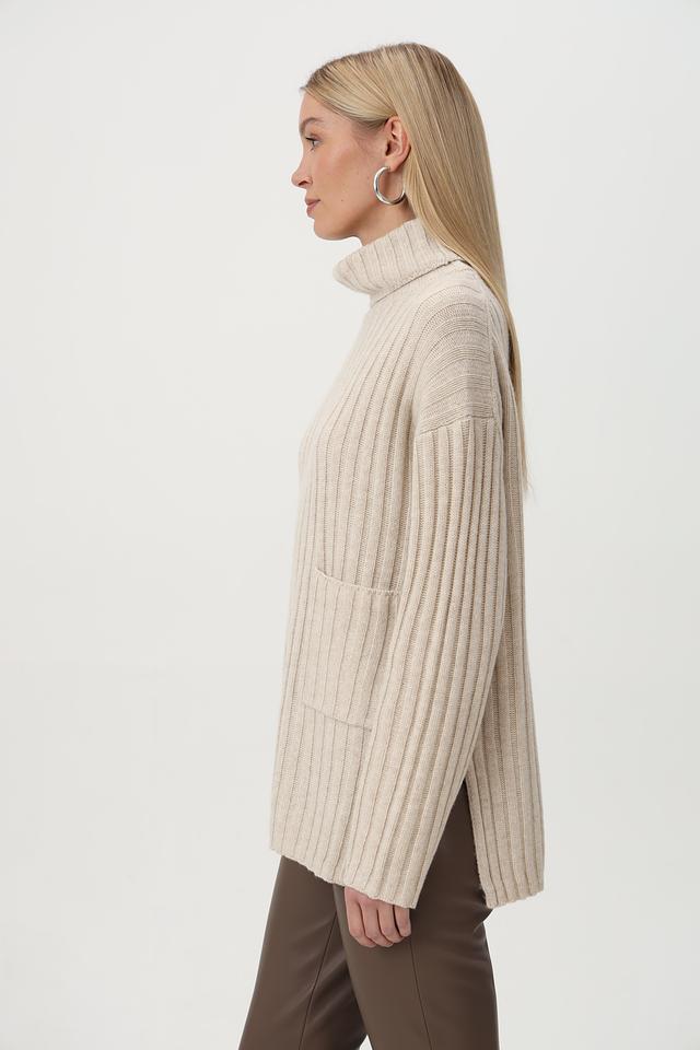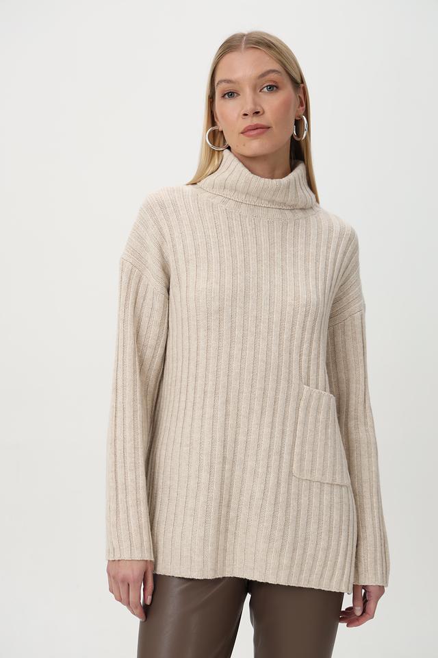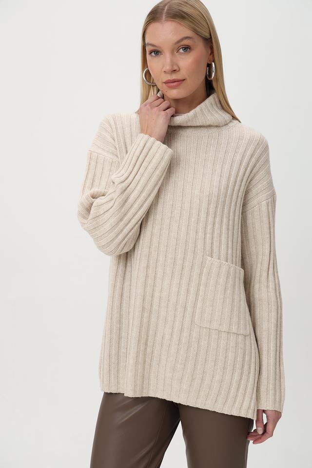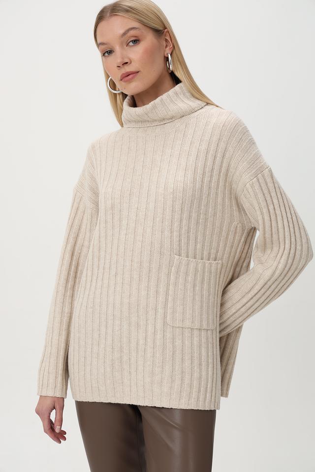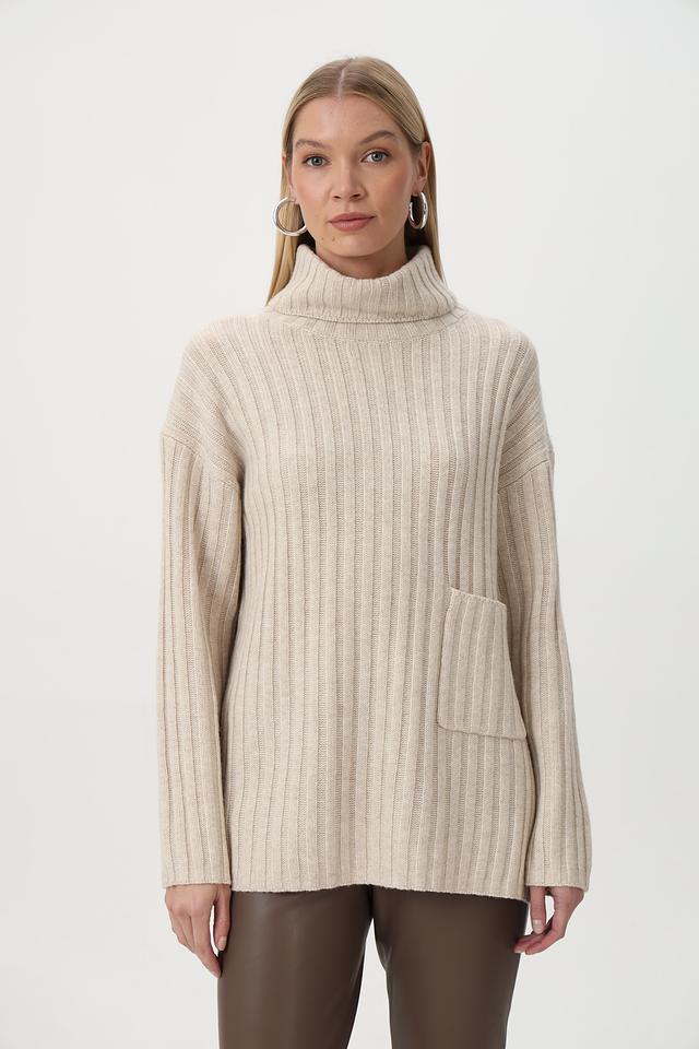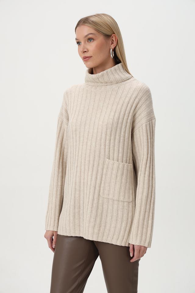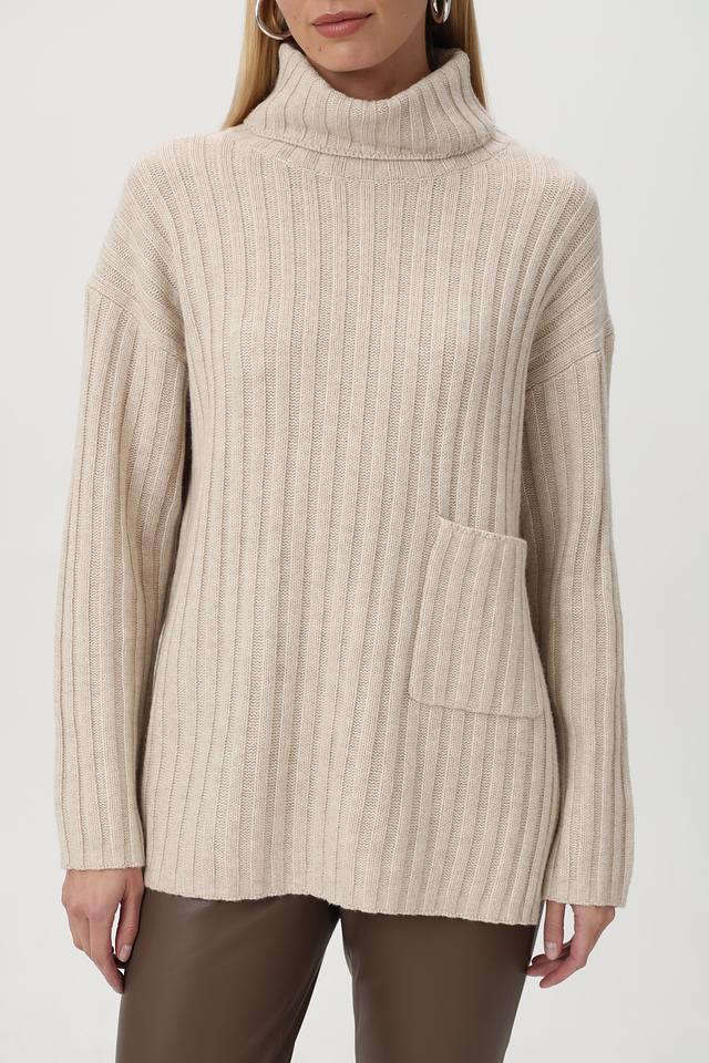 Бежевый пуловер Oui из мягкой пряжи с высоким воротом и накладным карманом. Сочетает в себе комфорт и стиль, выполнен из шерсти, полиамида и полиакрила. Состав: полиамид 50%, шерсть 35%, полиакрил 15%