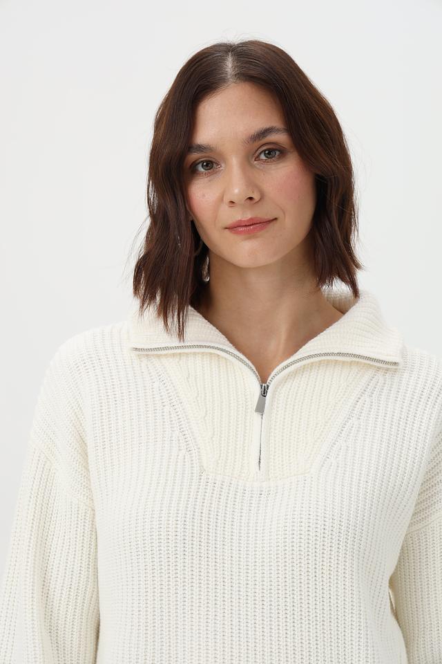 Белый пуловер Oui с воротником-стойкой и молнией станет отличным дополнением к вашему гардеробу. Изготовлен из мягкого хлопка с добавлением полиакрила для комфорта и долговечности. Состав: хлопок 60%, полиакрил 40%