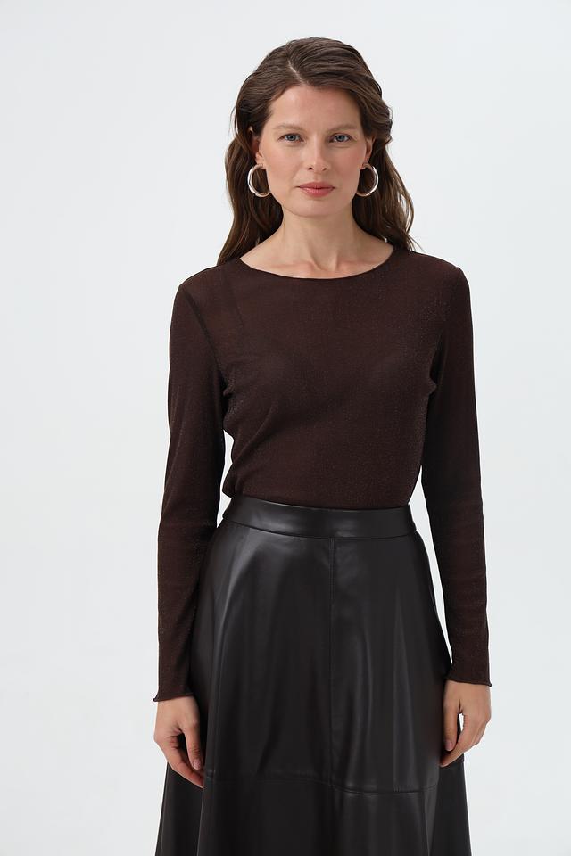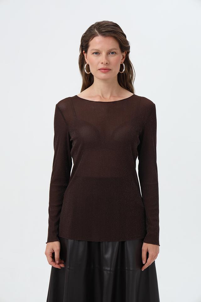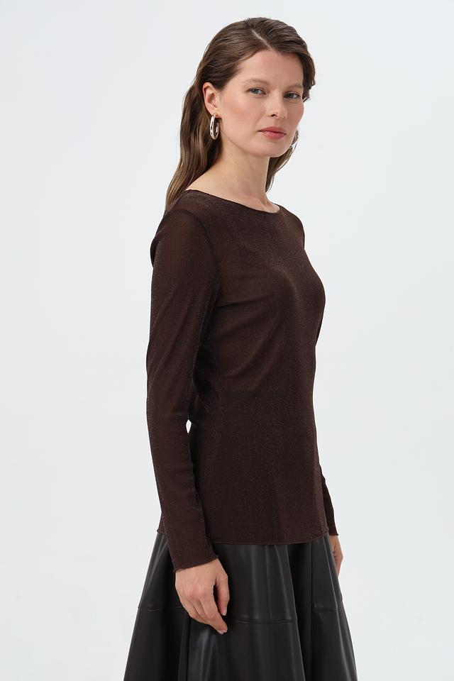 Коричневый пуловер Oui с деликатным блеском станет стильным дополнением вашего гардероба. Изготовлен из полиамида с добавлением металлизированной нити, обеспечивающей легкий мерцающий эффект. Состав: полиамид 90%, метализ.нить 10%