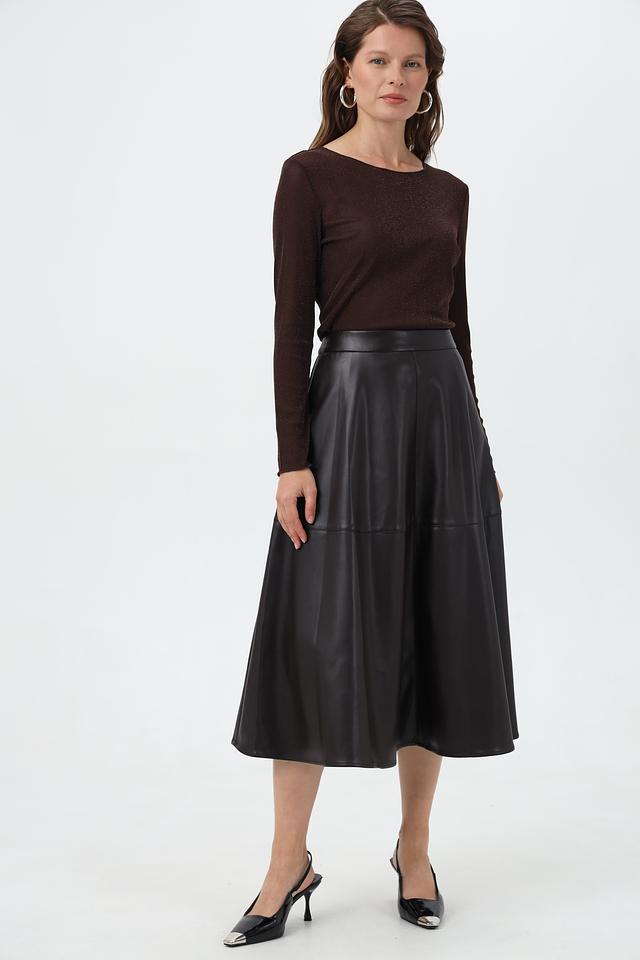 Модель имеет приталенный силуэт, который подчеркивает фигуру, и длинные рукава, обеспечивающие комфорт в прохладную погоду. Круглый вырез горловины делает образ более женственным и утонченным.
