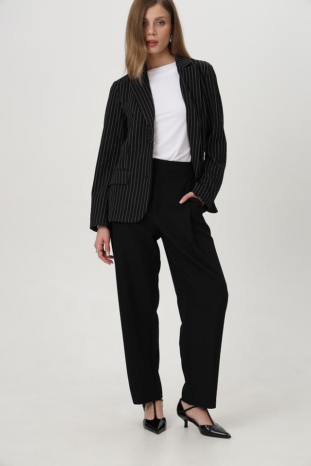 Представляем классические брюки от бренда Oui. Эта модель выполнена в элегантном черном цвете, что делает ее универсальным дополнением к любому гардеробу.