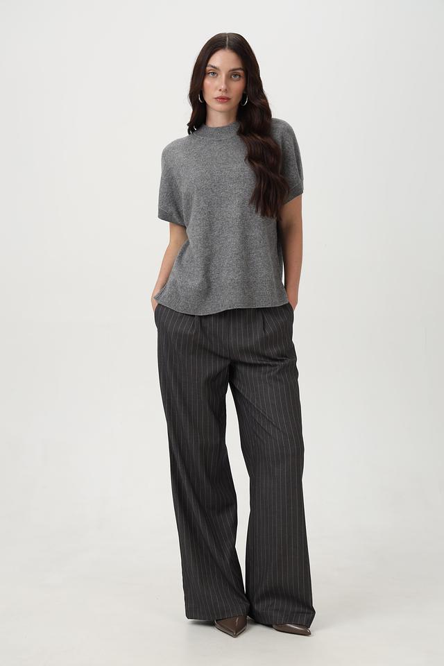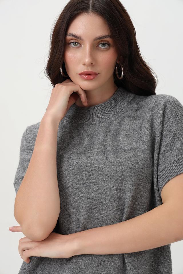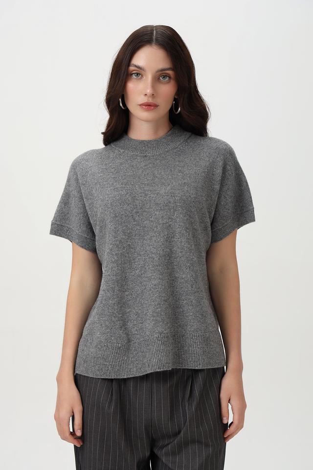 Пуловер Oui серый с коротким рукавом