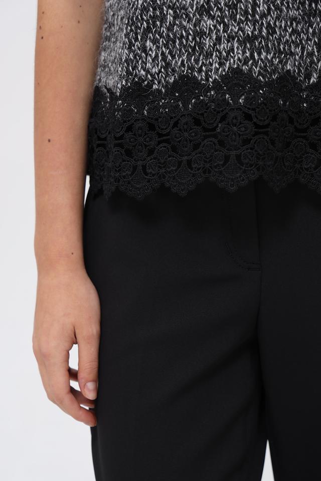 Стильный жилет Oui черного цвета с отделкой из кружева станет отличным дополнением к вашему образу. Изготовлен из смесовой ткани с добавлением альпаки, полиэстера и шерсти. Состав: полиакрил 62%, альпака 10%, шерсть 9%, полиамид 8%, вискоза 7%, полиэстер 4%