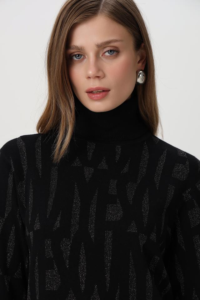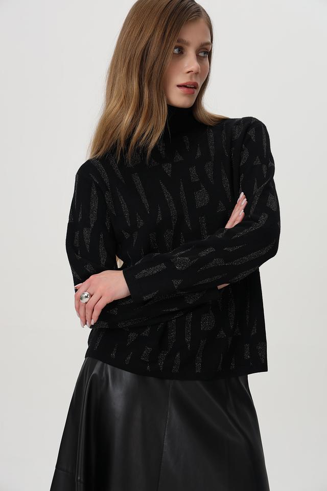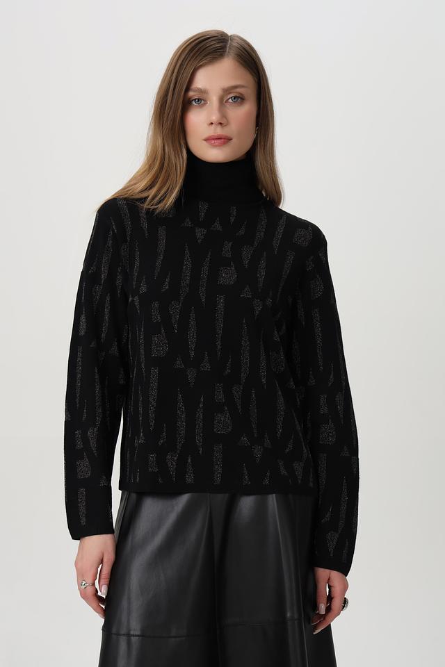 Модель имеет высокий воротник и длинные рукава, что делает его подходящим для прохладной погоды. Свободный крой обеспечивает комфорт в носке и позволяет легко комбинировать пуловер с другими элементами гардероба.