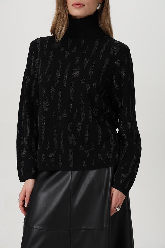 Чёрный пуловер Oui с оригинальным узором из серебристой нити станет стильным дополнением вашего гардероба. Изготовлен из мягкой вискозы с добавлением полиэстера, полиамида и шёлка для комфорта и изысканного внешнего вида. Состав: вискоза 50%, полиамид 34%, шелк 9%, полиэстер 5%, метализ.нить 2%