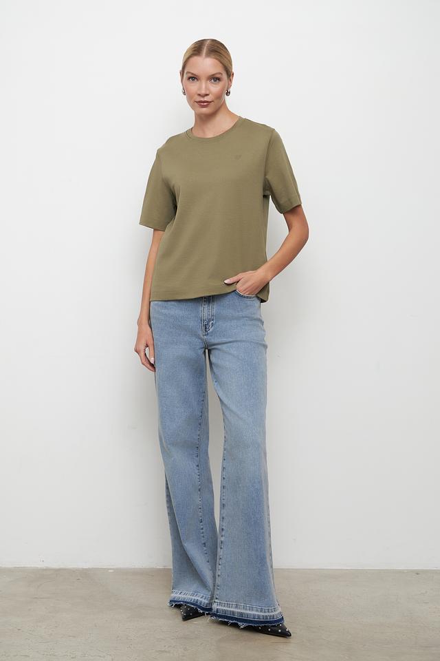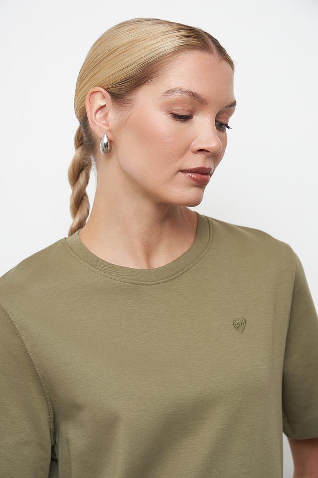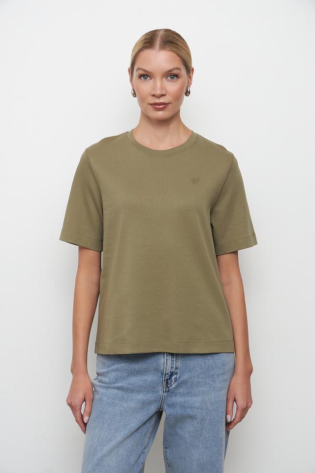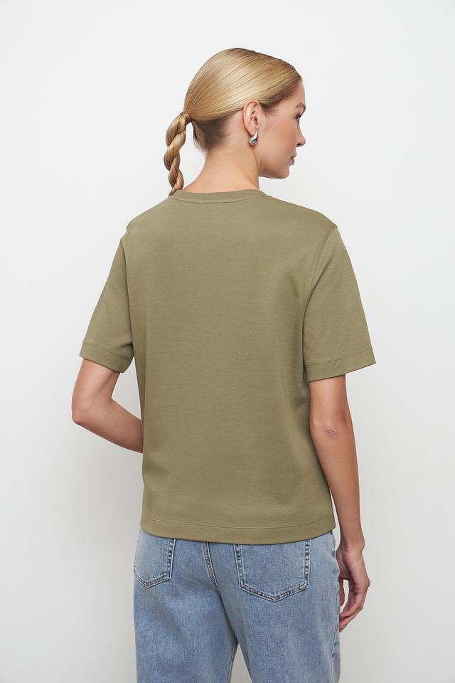 Женская футболка Oui оливкового цвета – это базовая модель из 100% хлопка, идеально подходящая для повседневного образа. Прямой крой и короткий рукав обеспечивают комфорт и свободу движений. Состав: хлопок 100%