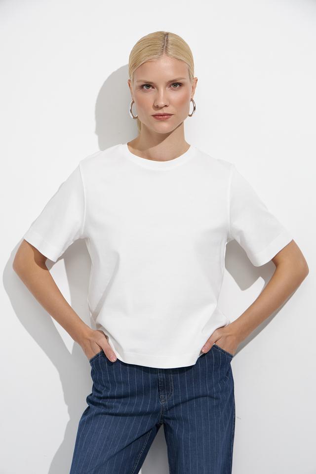 Эта футболка идеально подойдет для создания повседневных образов. Ее можно носить как самостоятельно, так и в сочетании с джинсами, шортами, юбками или пиджаками. Она станет отличной основой для любого вашего стиля.
