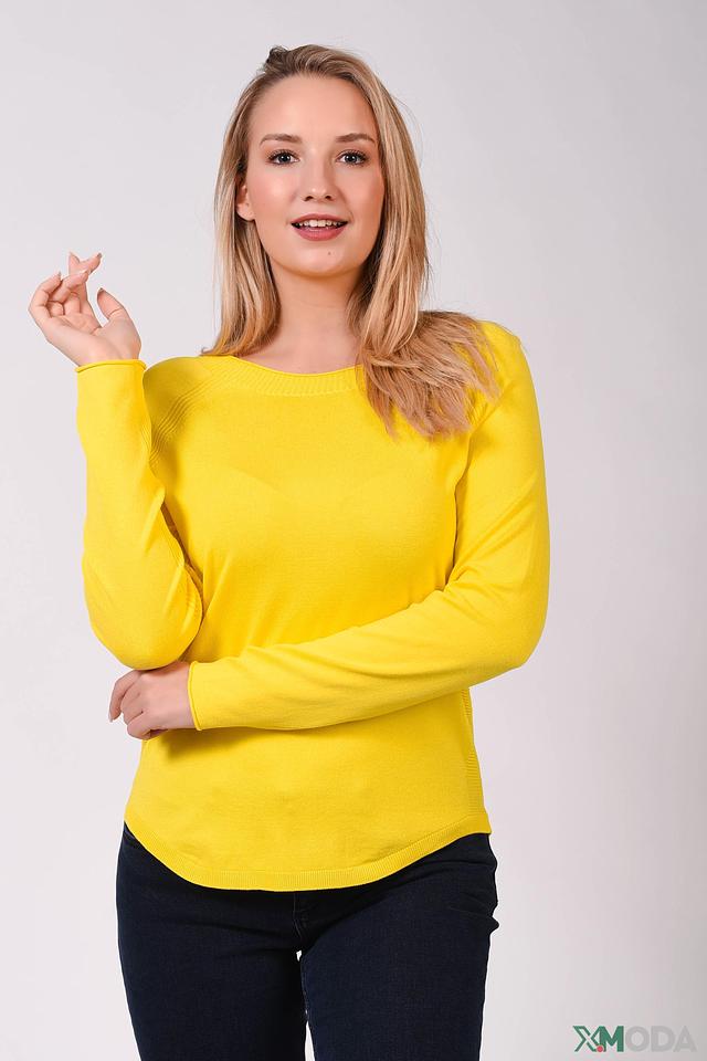 Жёлтый пуловер от Oui с округлым вырезом и длинными рукавами. Изготовлен из мягкой вискозы с добавлением полиамида для сохранения формы. Стильный и комфортный выбор для повседневного гардероба. Состав: вискоза 80%, полиамид 20%