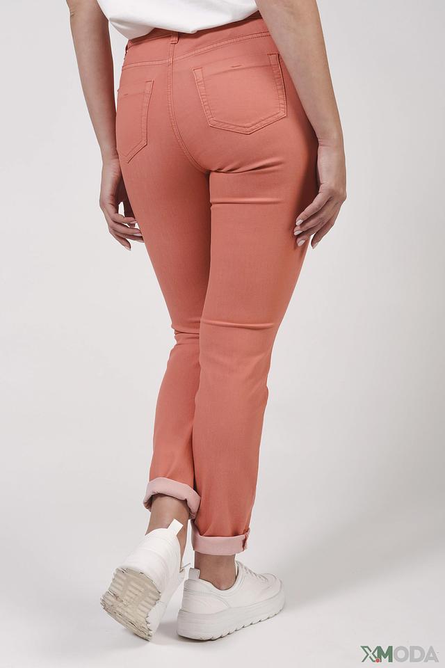 Брюки имеют классический крой с зауженными штанинами, что визуально удлиняет ноги и создает элегантный силуэт. Коралловый цвет добавляет образу яркости и свежести. Модель застегивается на молнию и пуговицу, а также имеет функциональные карманы спереди и сзади.