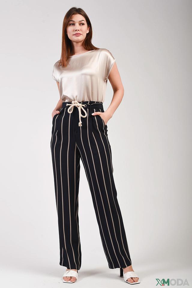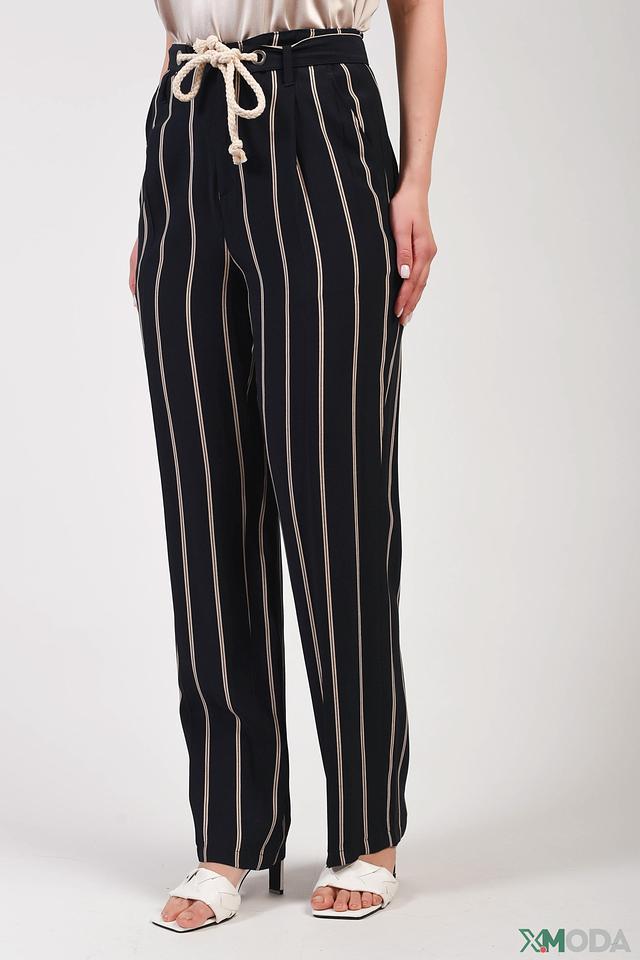 Брюки имеют прямой крой, высокую посадку и пояс на завязках, что обеспечивает комфортную посадку и возможность регулировки. Изготовлены из 100% вискозы, что делает их приятными на ощупь и легкими в уходе.
