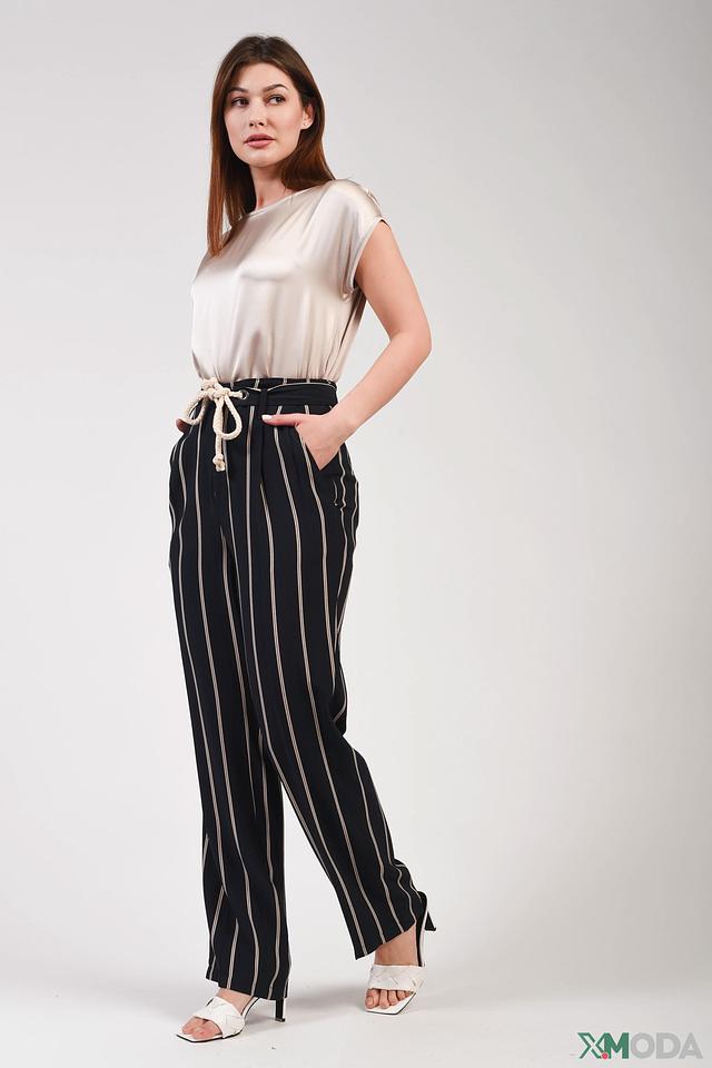Женские брюки от Oui в классическую чёрно-белую полоску. Модель прямого кроя с высокой посадкой и поясом с завязками обеспечит комфорт и стильный образ. Состав: вискоза 100%