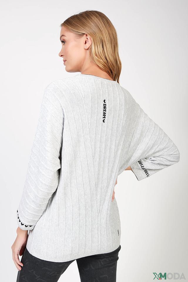 Серый пуловер от Oui из 100% хлопка с оригинальным дизайном и принтами на рукавах. Удобный крой и мягкий материал делают этот пуловер идеальным выбором для повседневного образа. Состав: хлопок 100%