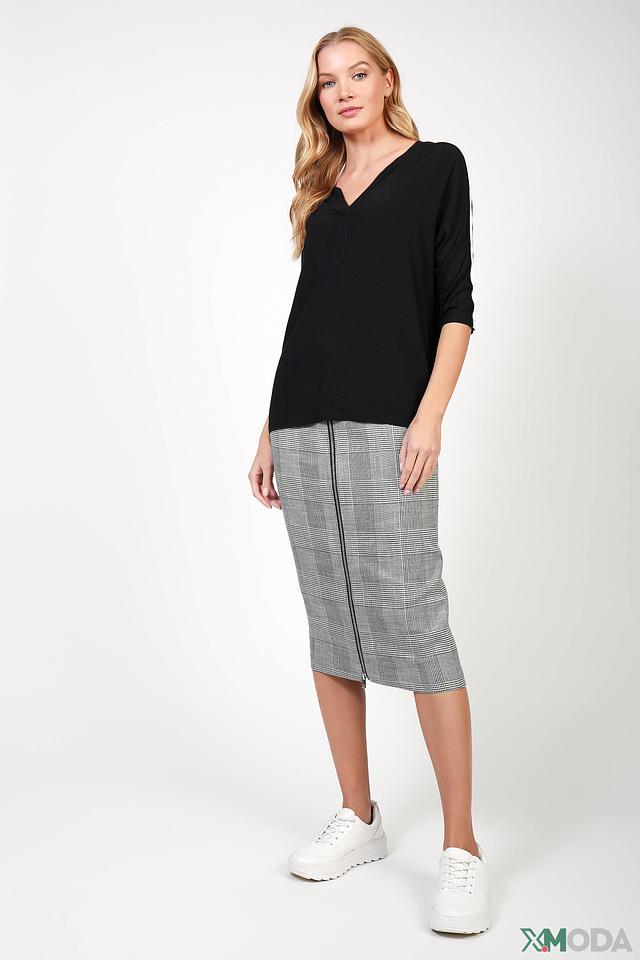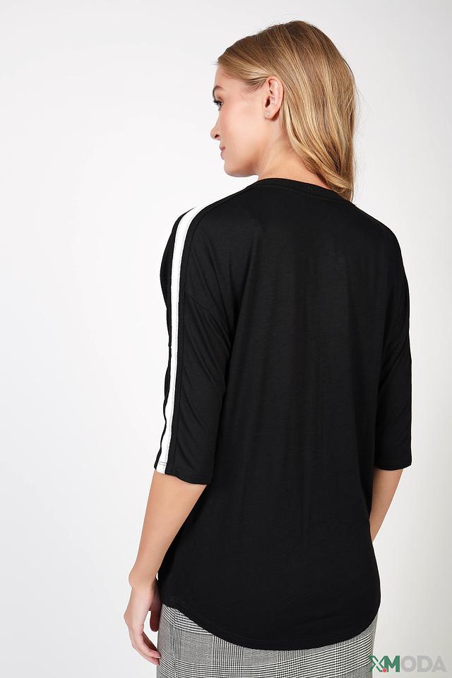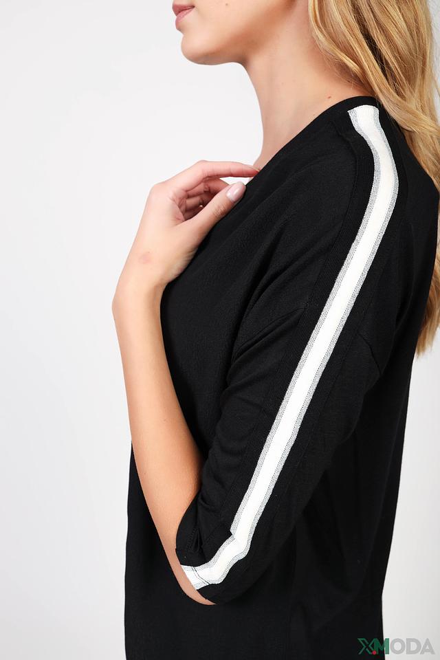 Чёрная блуза от Oui с короткими рукавами и белыми полосками по бокам. Изготовлена из мягкой вискозы, обеспечивающей комфорт в носке. Стильный и лаконичный дизайн. Состав: вискоза 100%