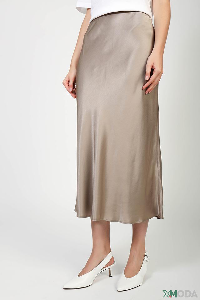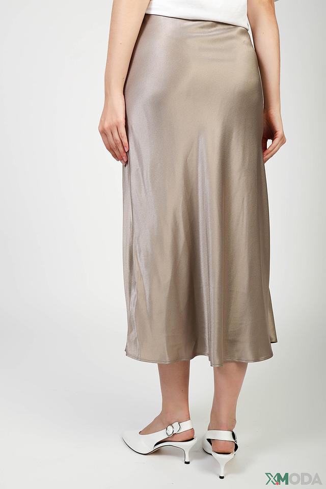 Юбка имеет классический крой и длину миди, что делает ее универсальной для различных случаев. Атласная текстура придает изделию элегантный и изысканный вид. Бежевый цвет юбки легко сочетается с различными элементами одежды, позволяя создавать разнообразные стильные образы.