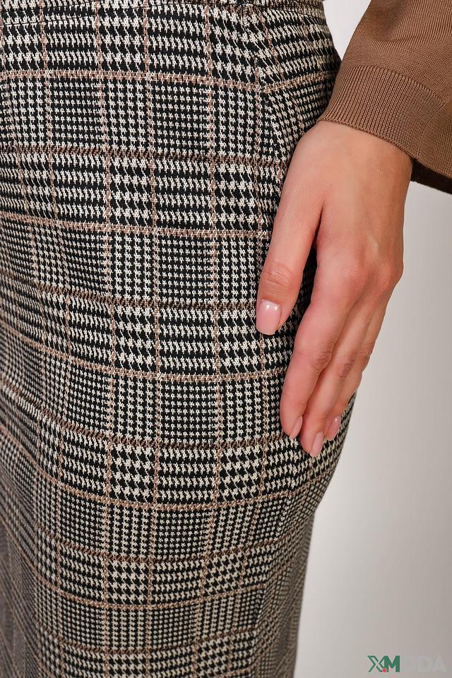 Юбка имеет приталенный силуэт и длину миди, что делает ее подходящей для различных случаев. Классический клетчатый принт добавляет образу элегантности и стиля. Застежка на молнию расположена сзади.
