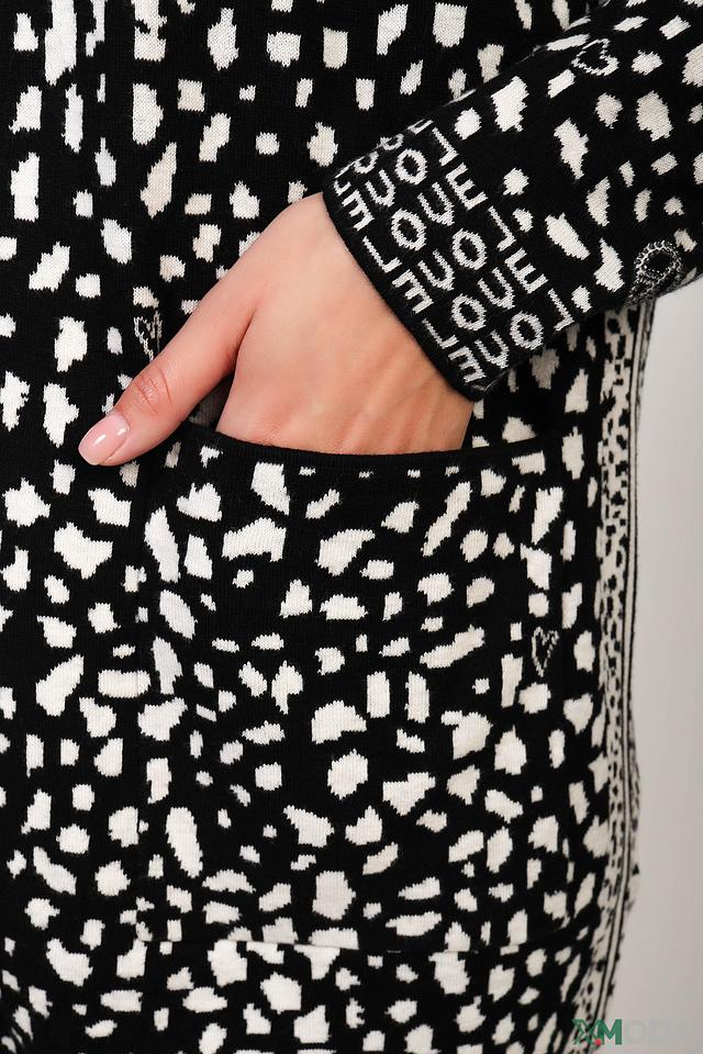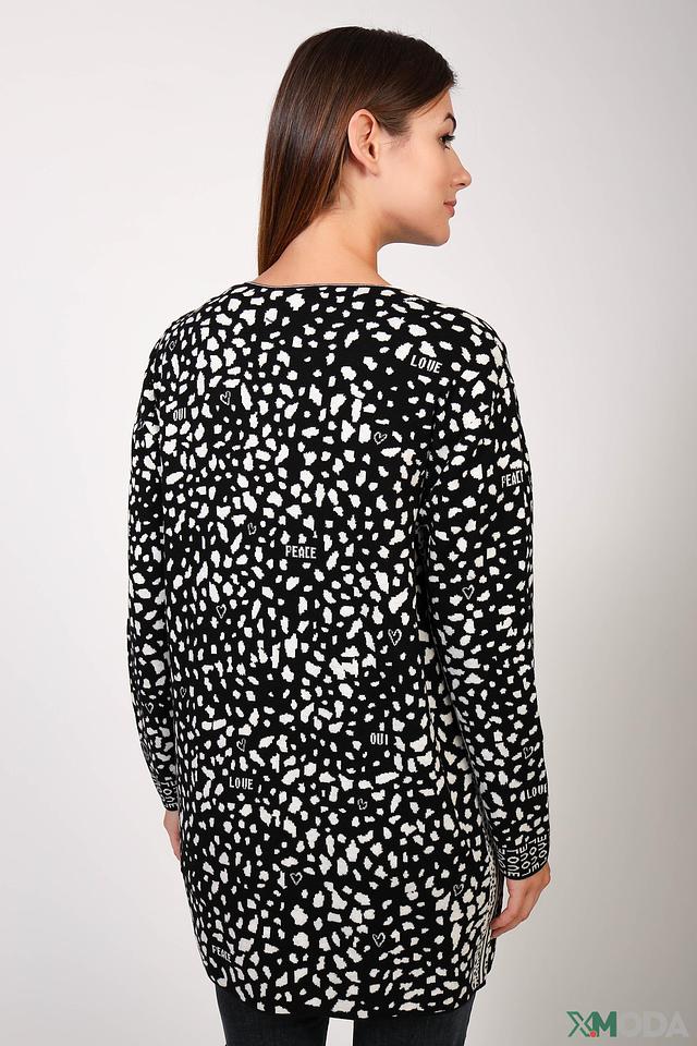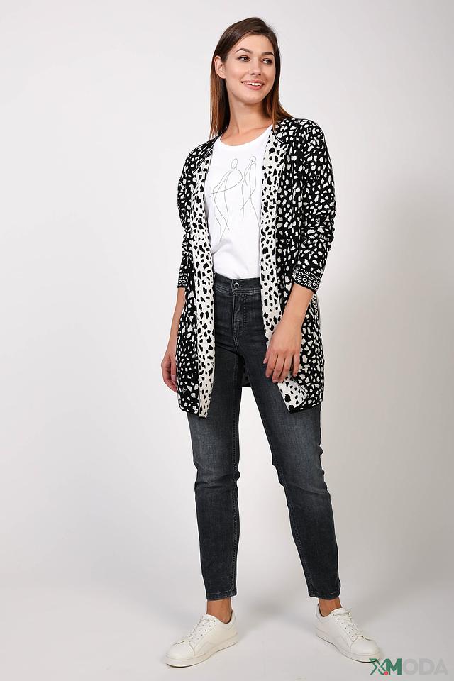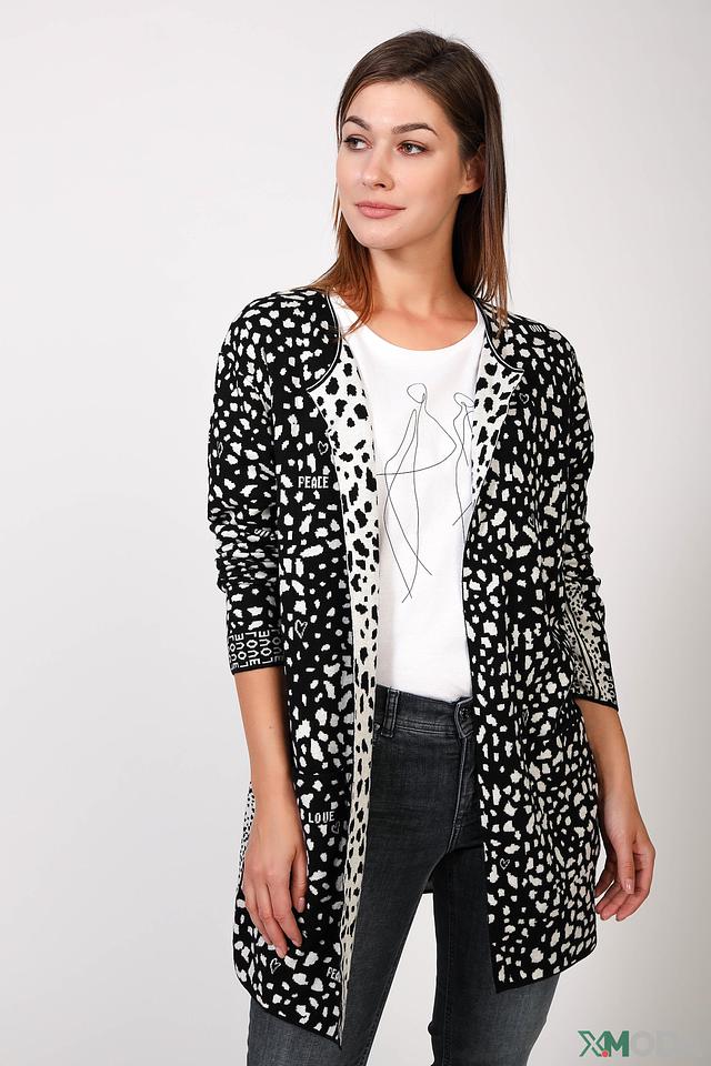 Этот жакет от бренда Oui – отличный выбор для создания комфортного и модного образа. Жакет выполнен в чёрно-белой цветовой гамме и украшен ярким принтом, сочетающим в себе элементы леопарда, сердечки и надписи.