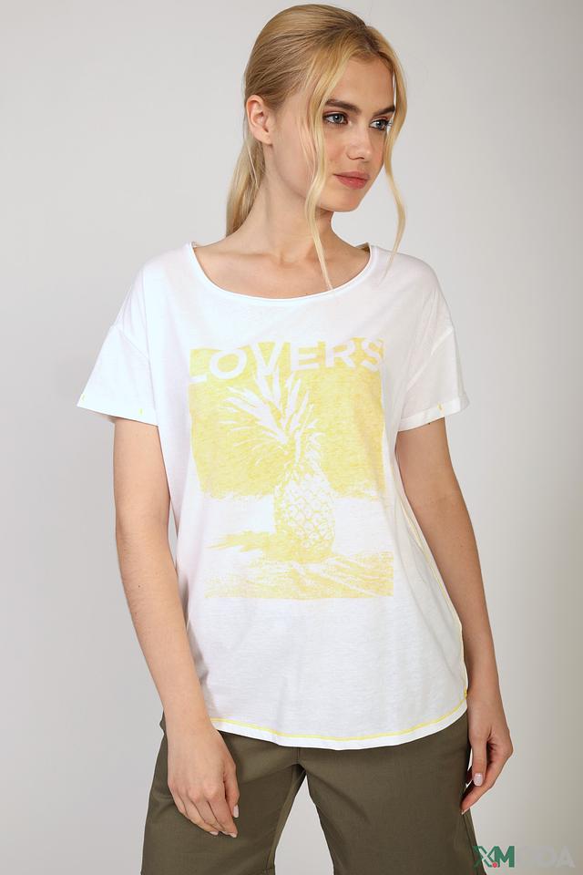 Белая футболка от Oui с ярким принтом ананаса и надписью "LOVERS". Изготовлена из 100% хлопка, обеспечивая комфорт и воздухопроницаемость. Отличный выбор для создания летнего и непринужденного образа. Состав: хлопок 100%