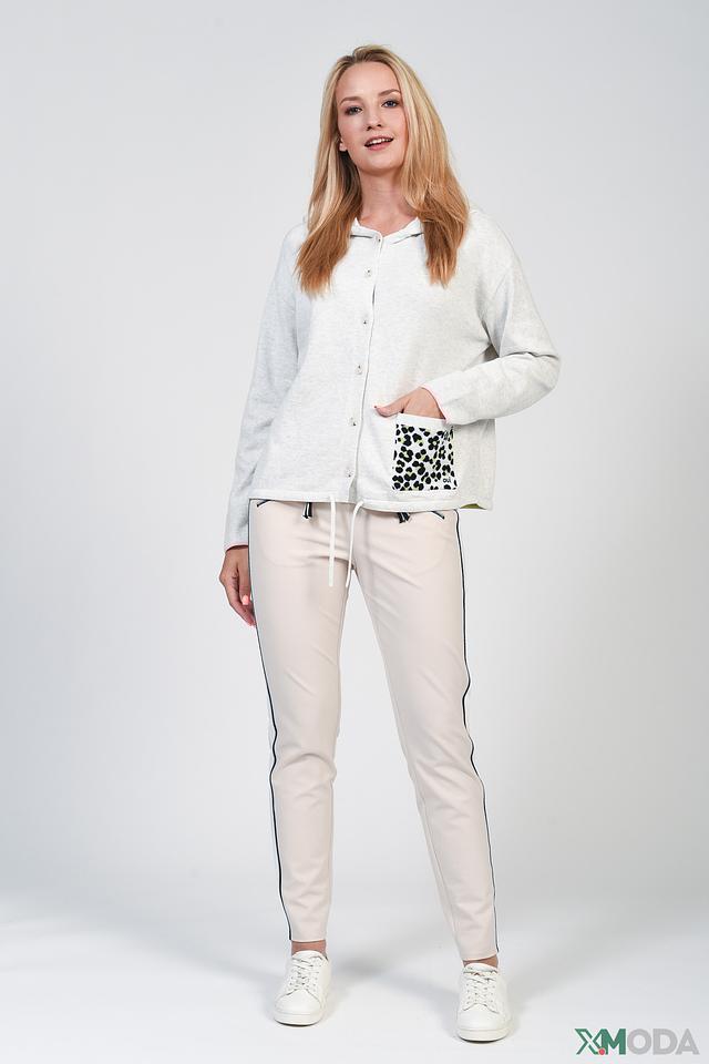 Жакет Oui светло-серого цвета с капюшоном и оригинальным карманом с леопардовым принтом. Модель застегивается на пуговицы и выполнена из мягкого хлопка. Состав: хлопок 100%