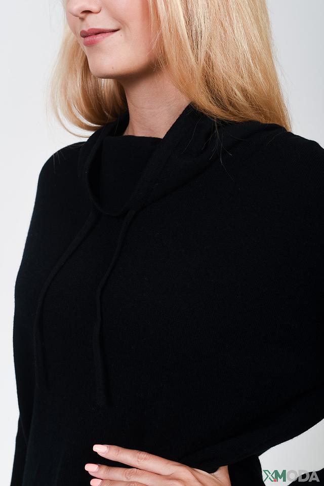 Пуловер имеет удобный воротник-хомут с двумя шнурками, которые добавляют образу непринужденности и позволяют регулировать посадку. Свободный крой не сковывает движений и подходит для различных типов фигур.