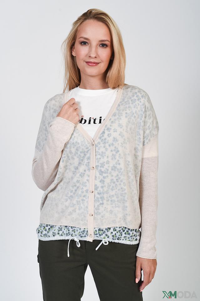 Женский кардиган Oui бежевого цвета с оригинальным леопардовым принтом и застёжкой на пуговицы. Модель выполнена из мягкого трикотажа с добавлением шерсти и кашемира для комфорта и тепла. Состав: вискоза 26%, полиамид 24%, модал 24%, хлопок 12%, шерсть 12%, кашемир 2%