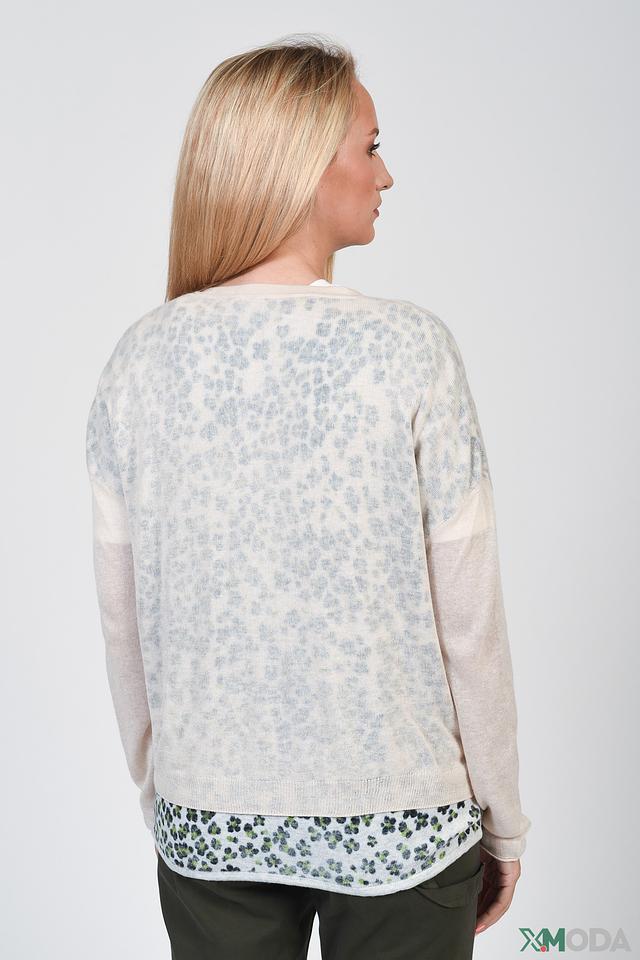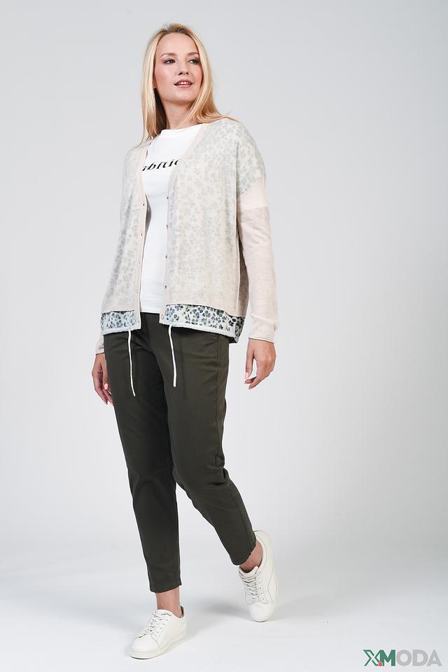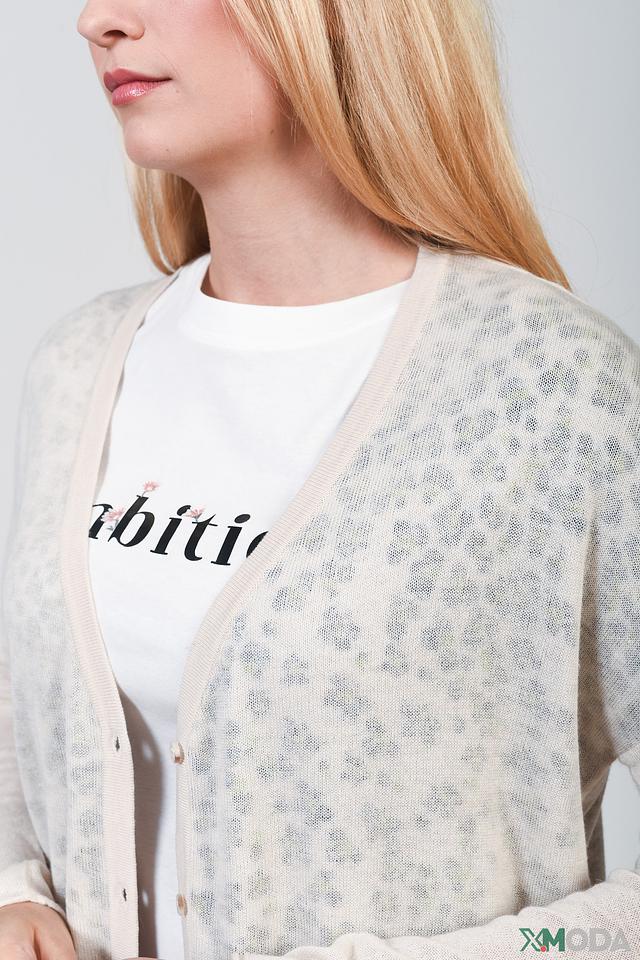 Кардиган имеет бежевый цвет с нежным леопардовым принтом, который придает ему особый шарм. Застежка на пуговицы позволяет регулировать степень открытости и создавать различные образы.