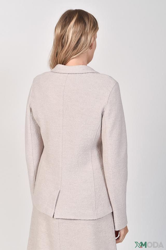Состав ткани – 52% шерсть и 48% вискоза. Шерсть обеспечивает тепло и мягкость, а вискоза – приятные тактильные ощущения и хорошую драпировку. Жакет приятен в носке и прост в уходе.