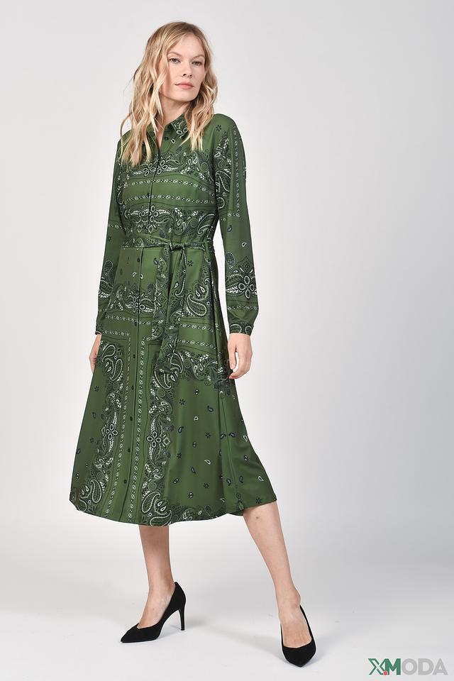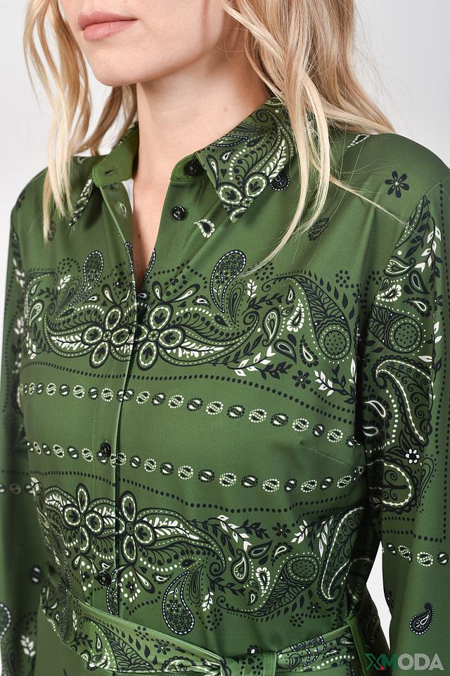 Это стильное платье от бренда Oui станет отличным дополнением к вашему гардеробу. Платье выполнено в зелёном цвете и украшено ярким принтом пейсли, который придает ему неповторимый вид.